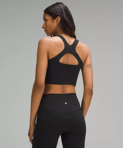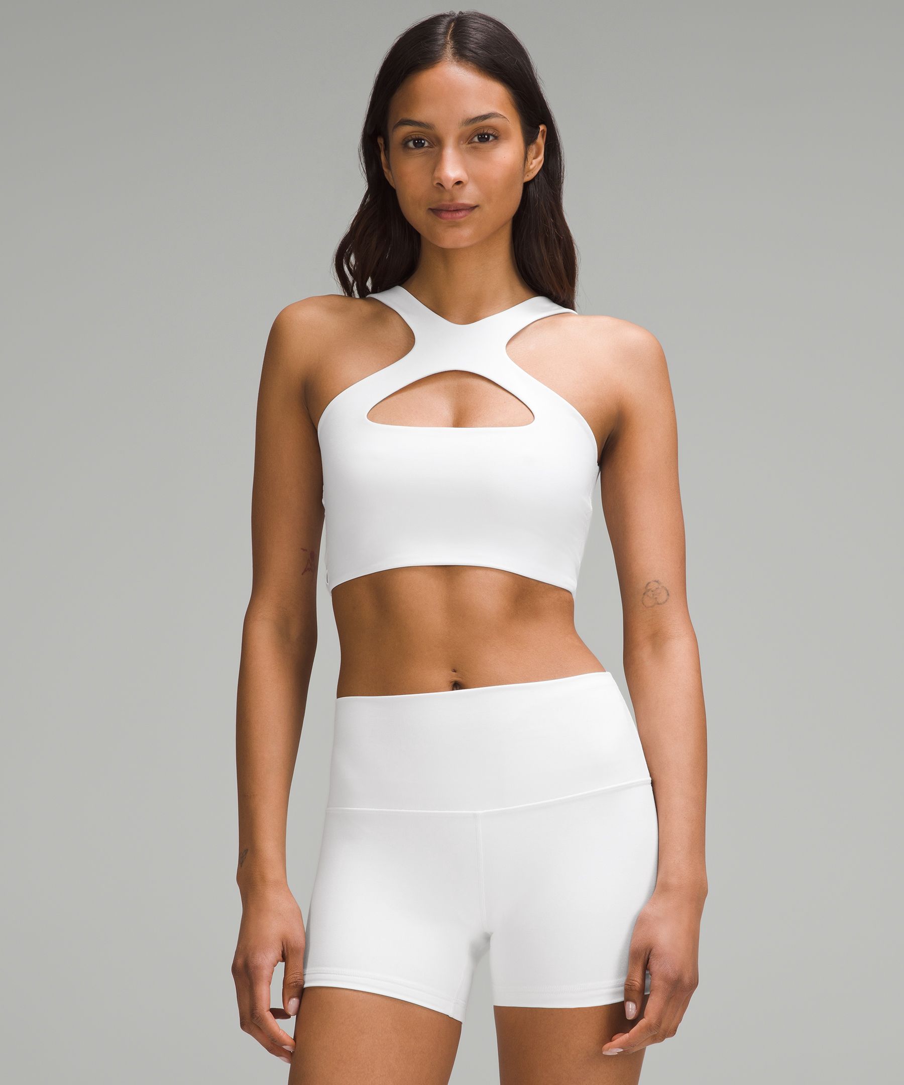 - Wear it as a scoop neck with a cross back or flip it around to wear the crossed straps in the front