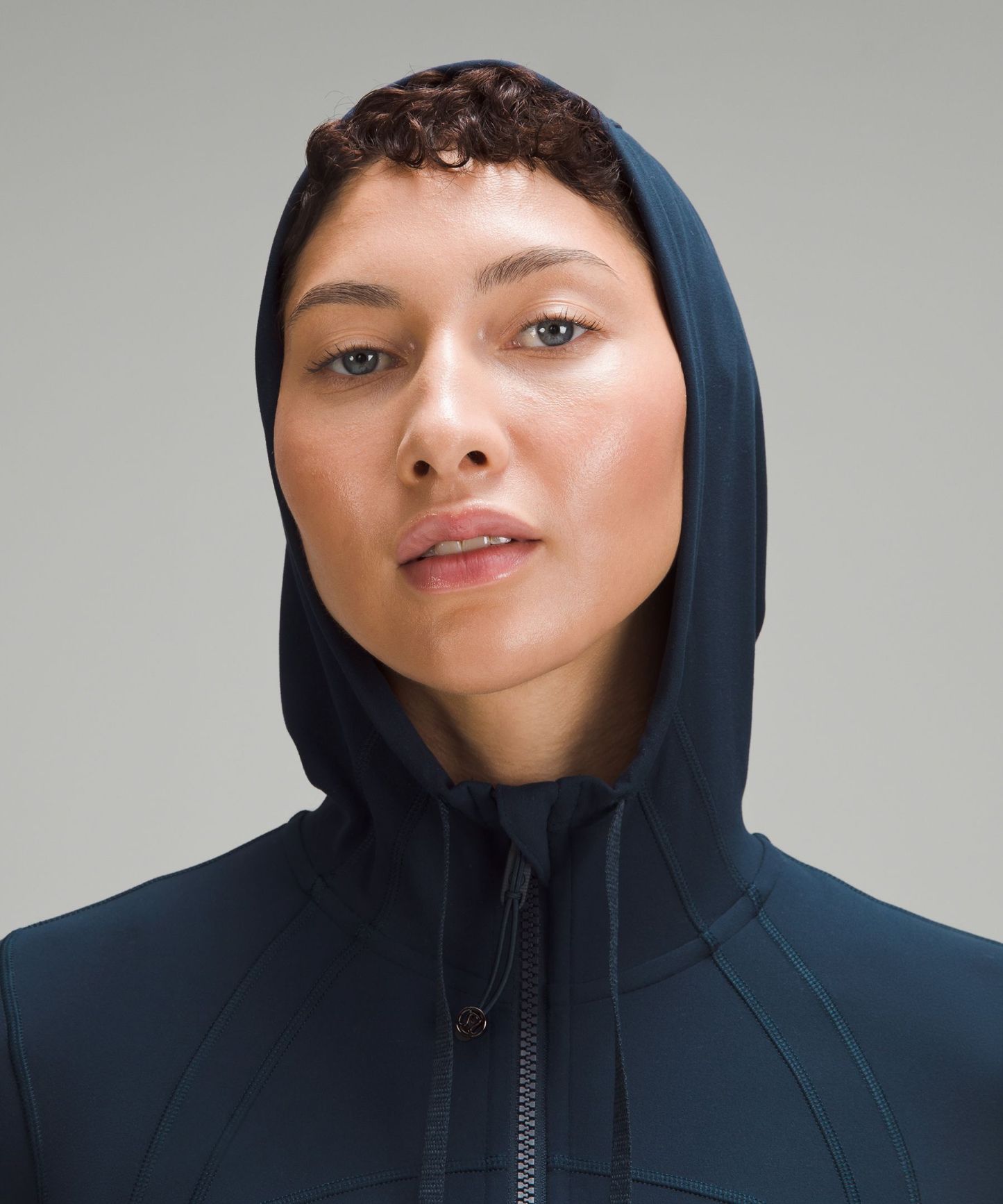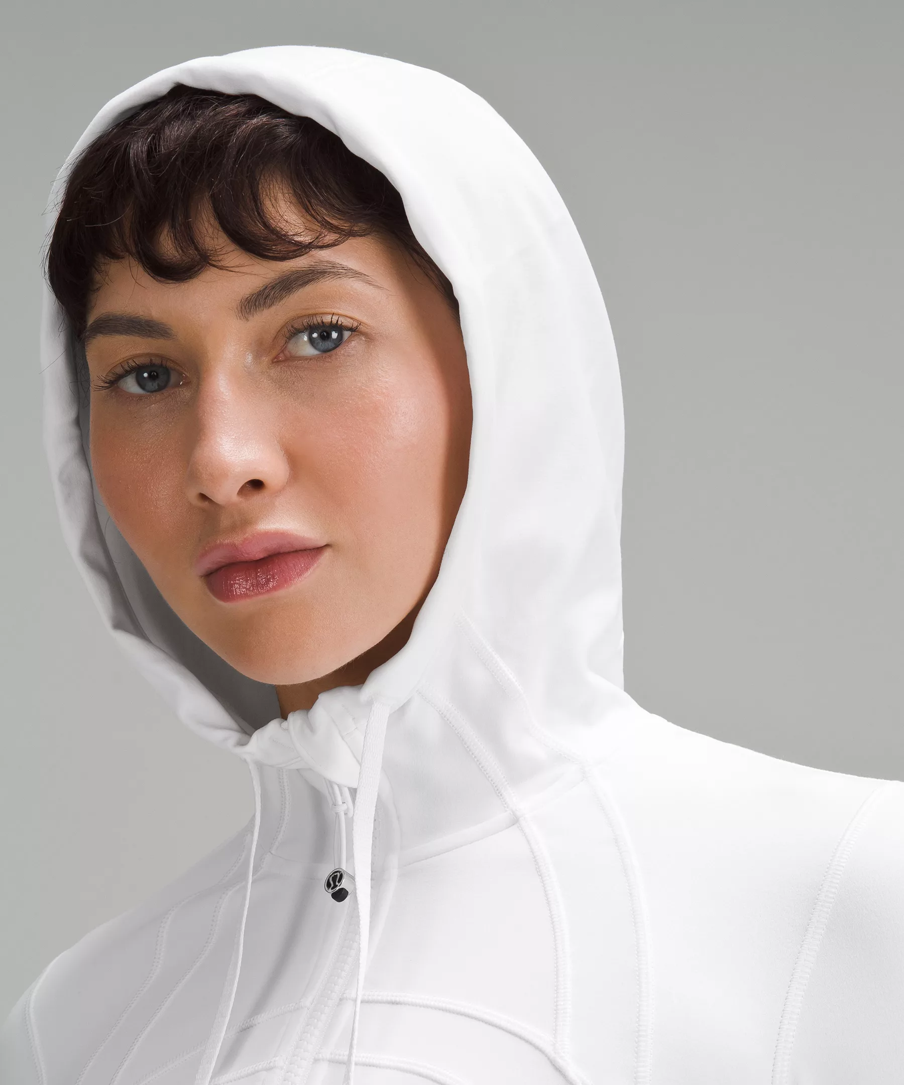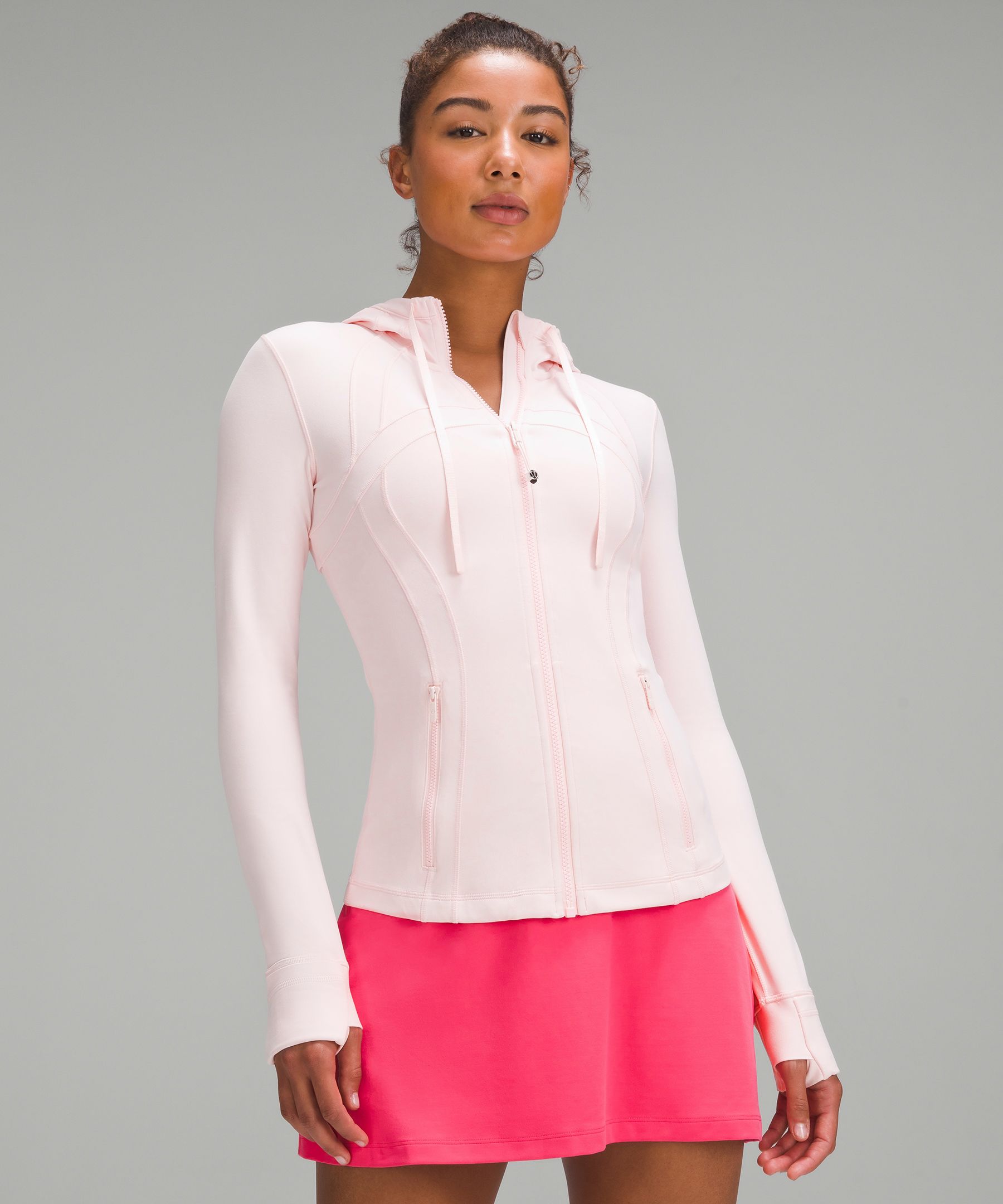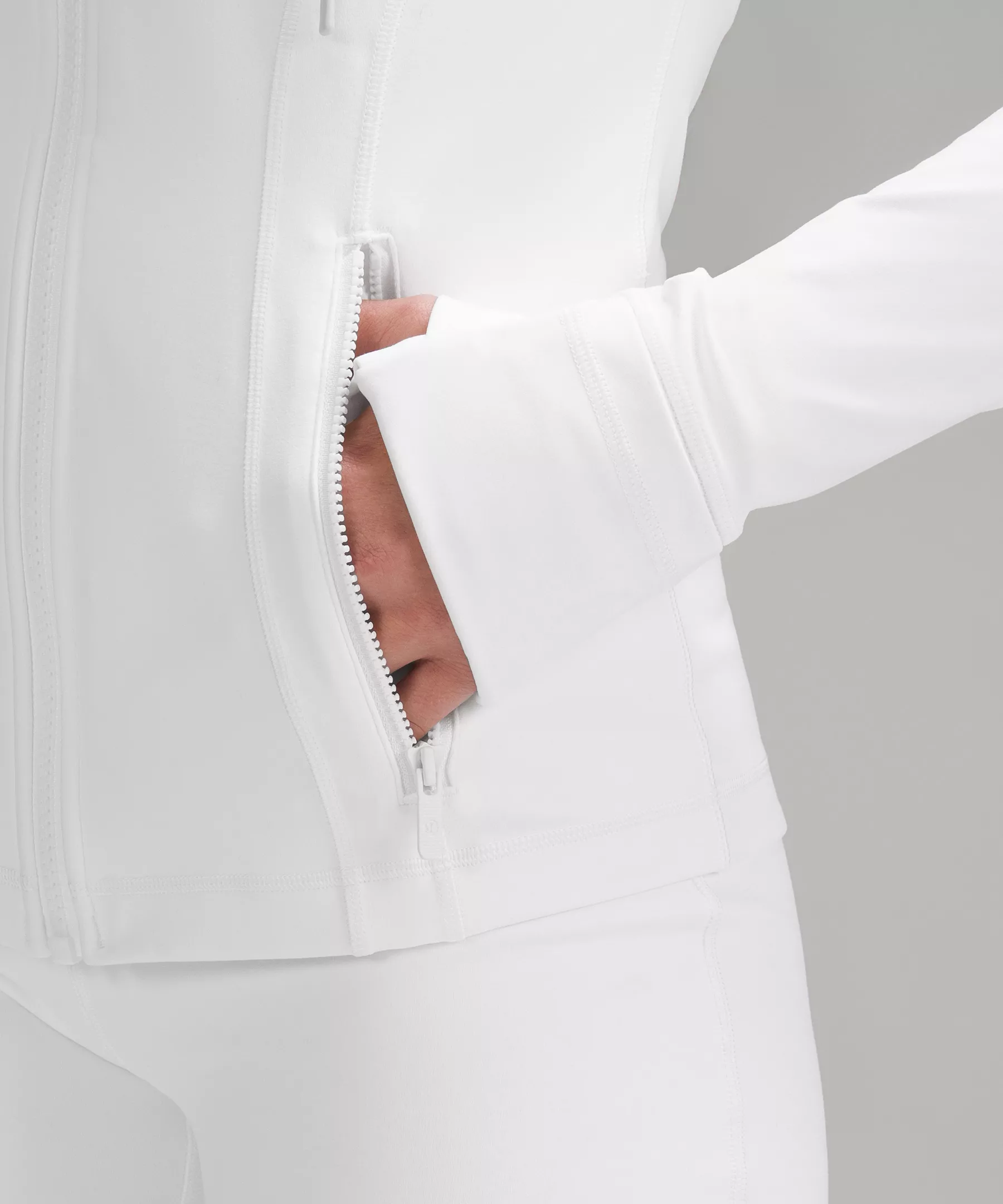 - Elastic zipper pull doubles as an emergency hair tie