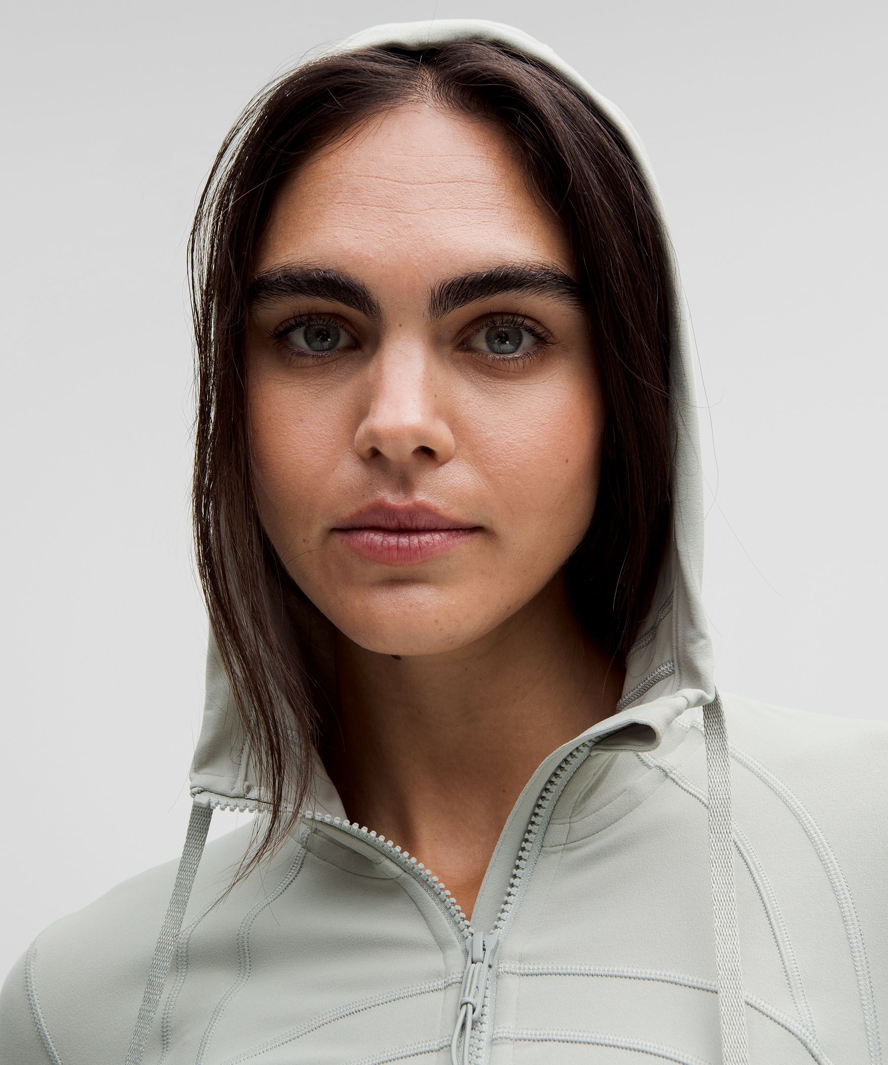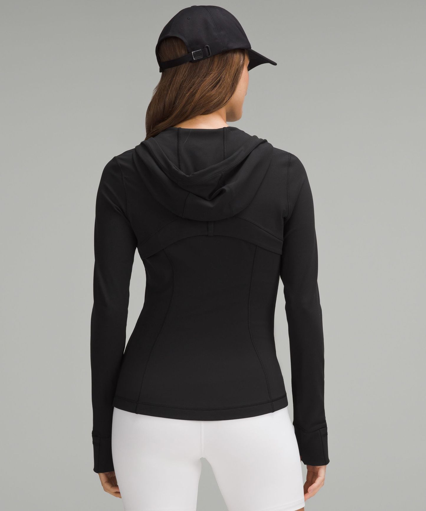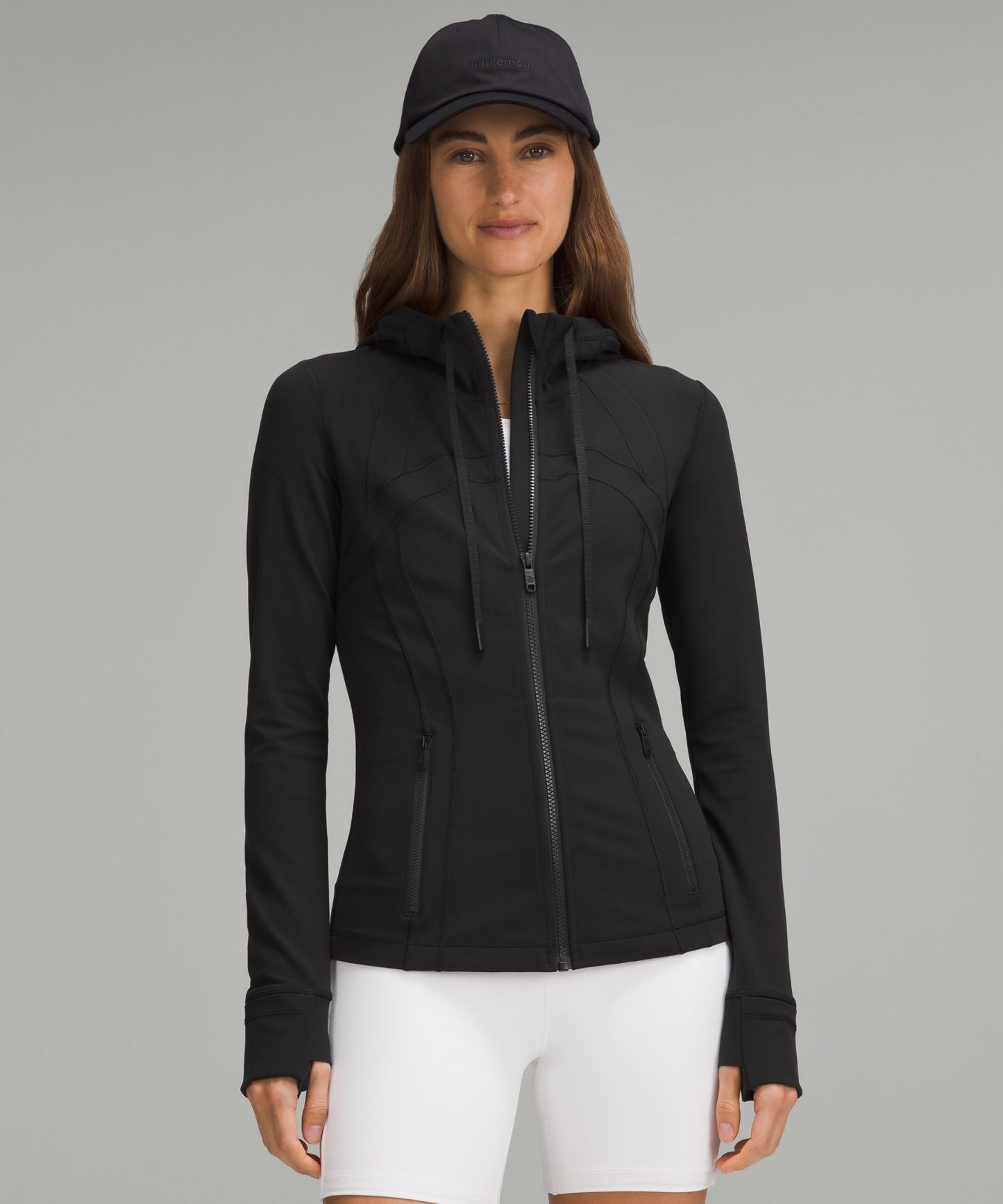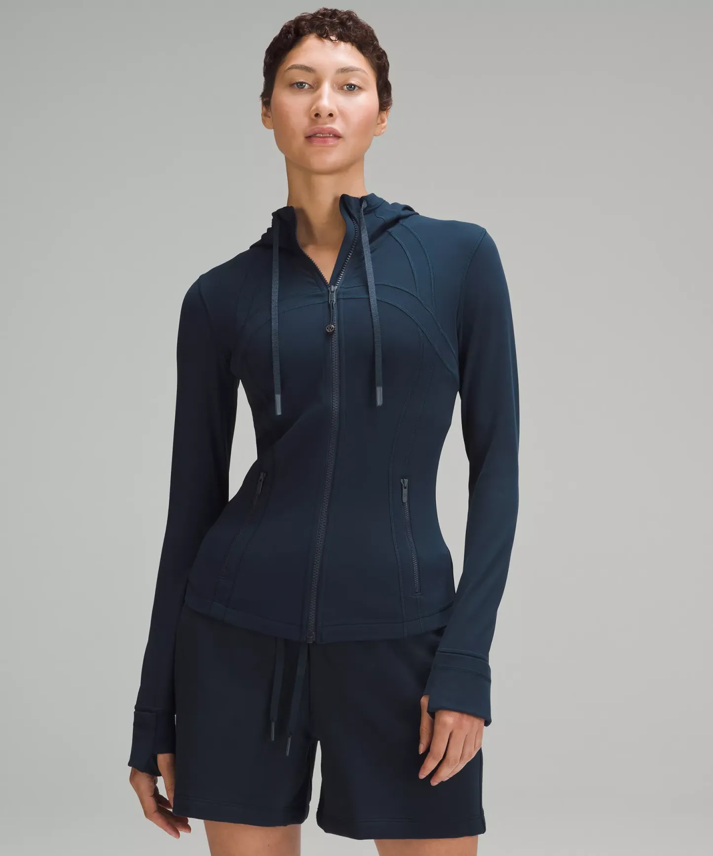 - Elastic zipper pull doubles as an emergency hair tie