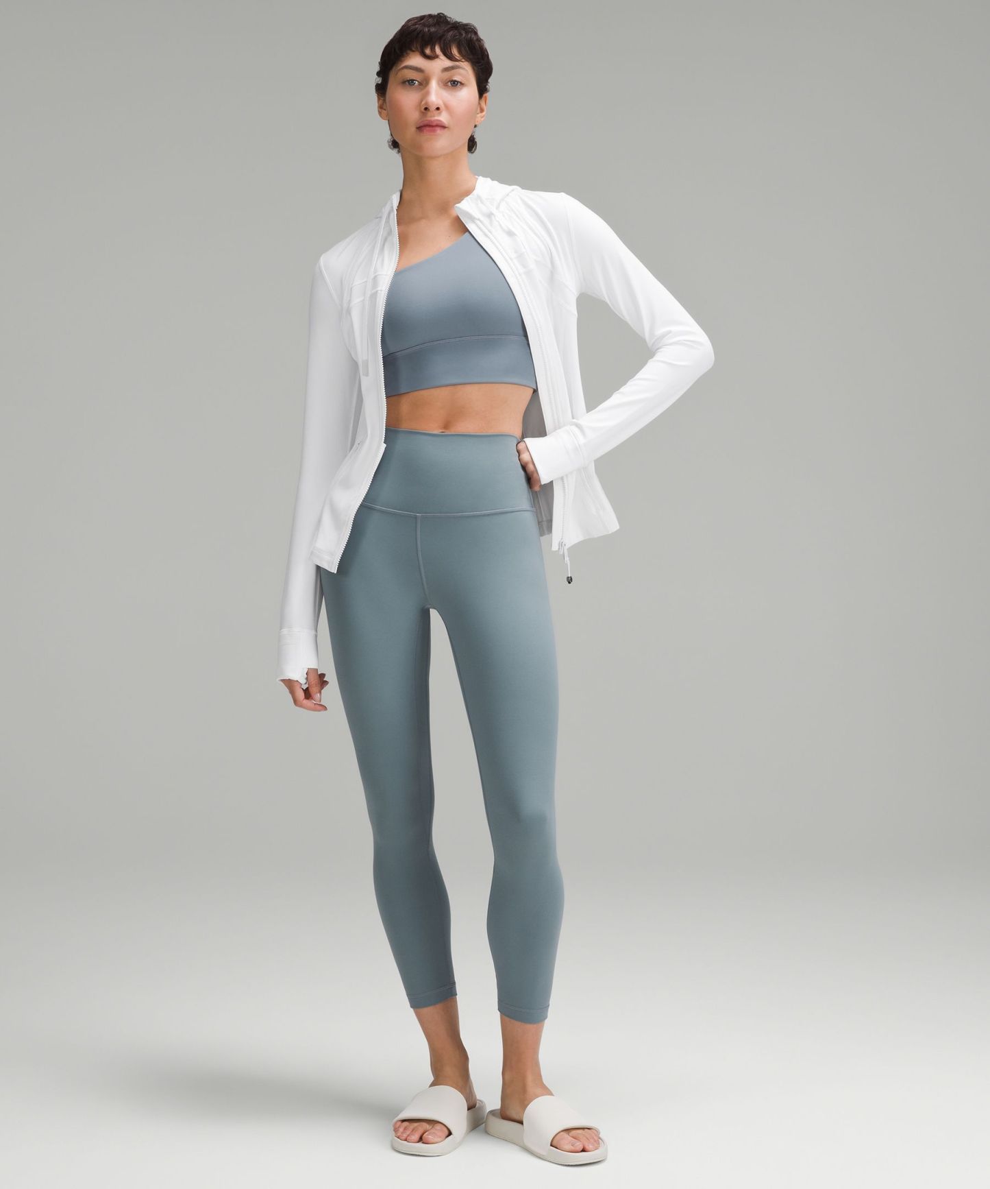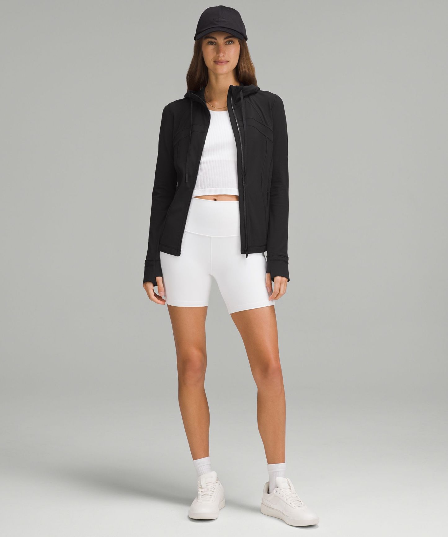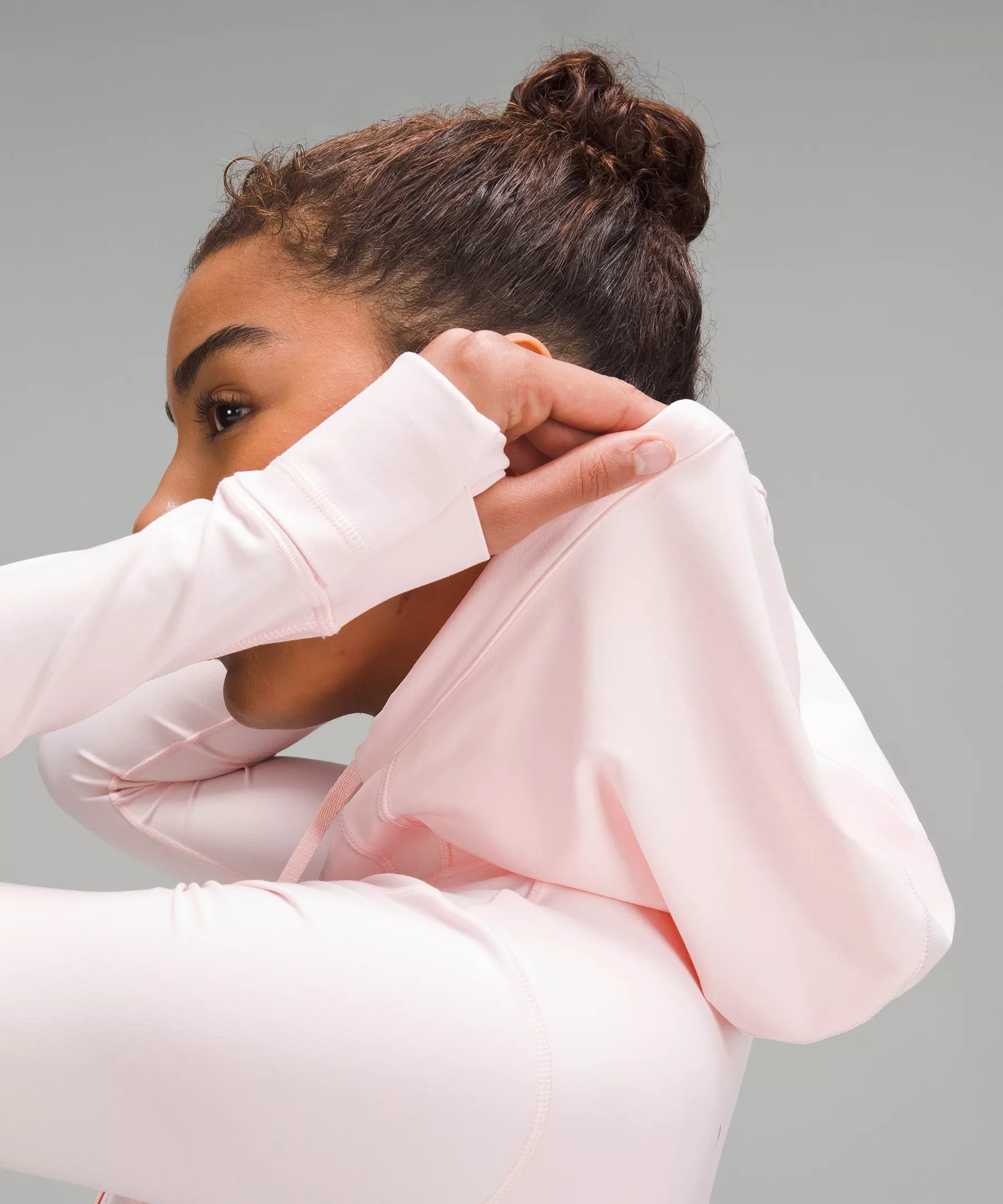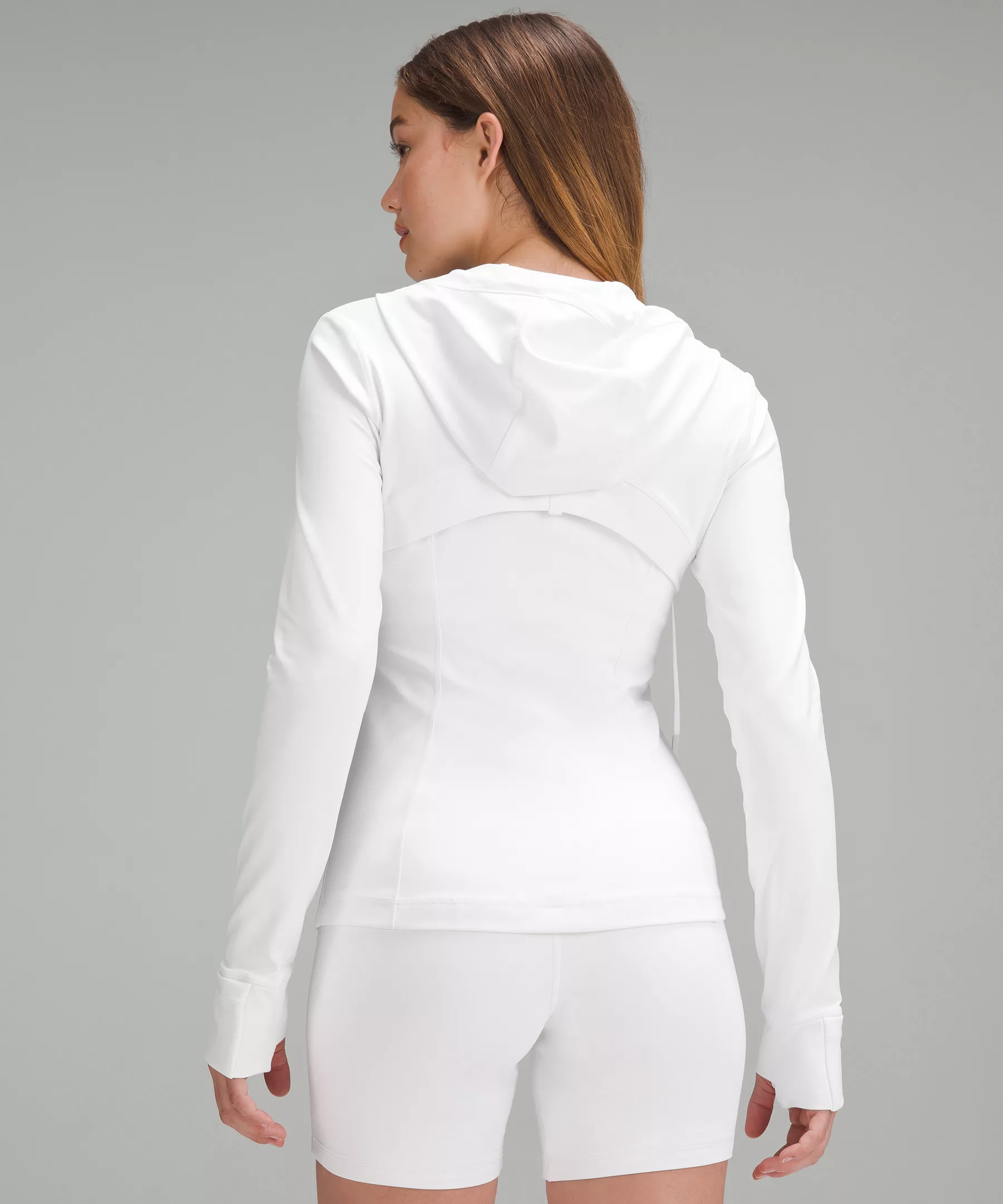 - Elastic zipper pull doubles as an emergency hair tie