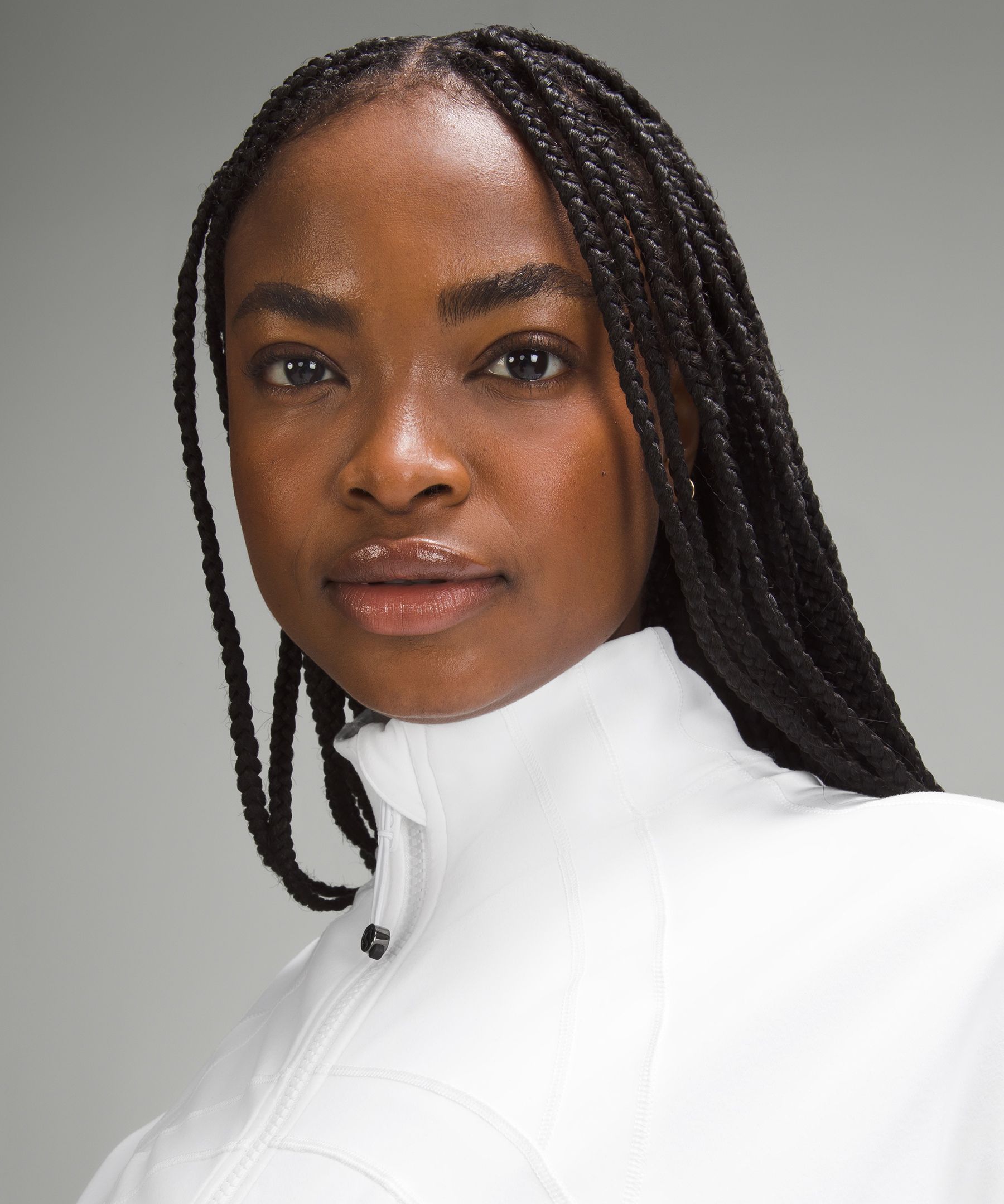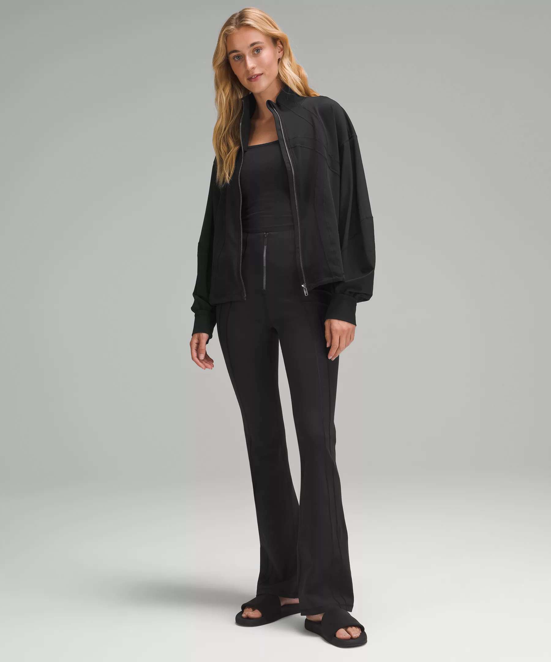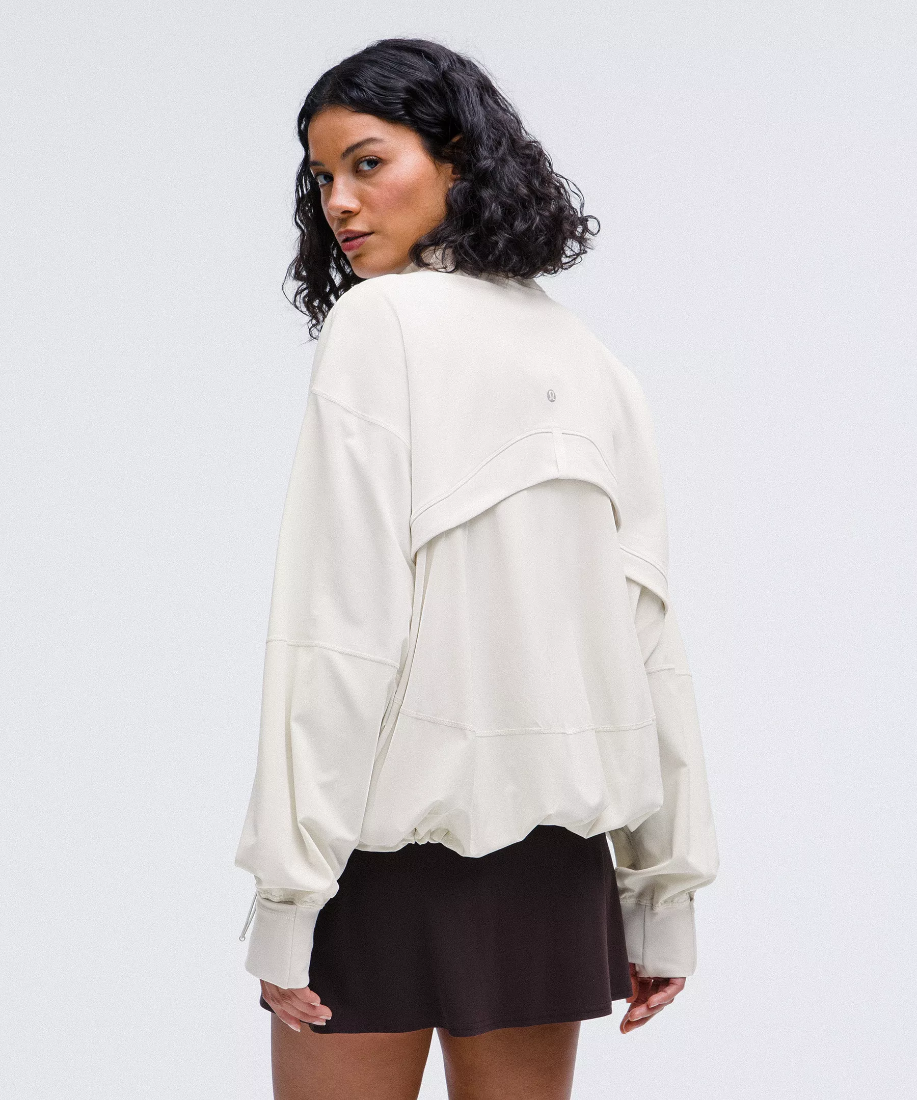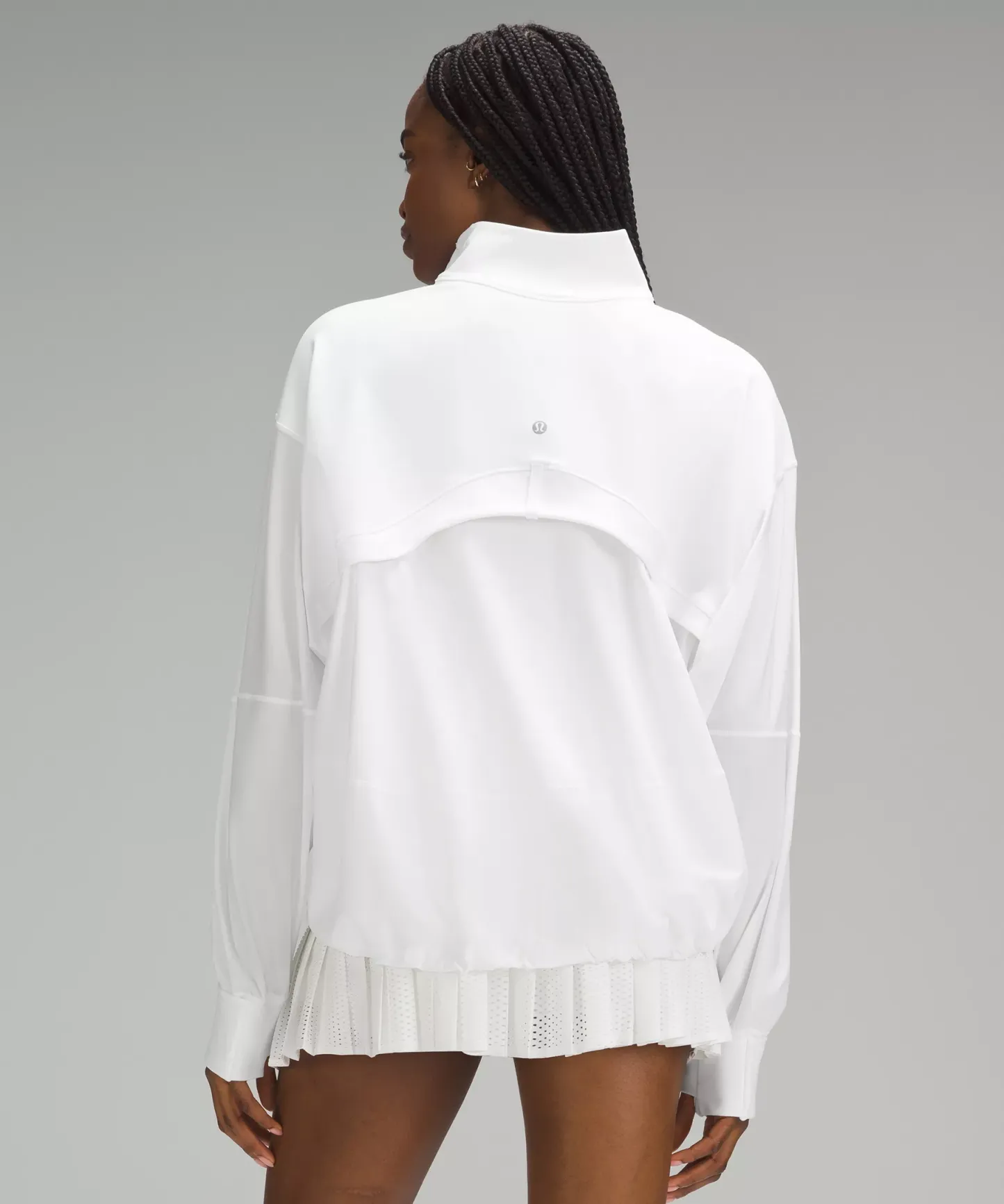 - Elastic zipper pull doubles as an emergency hair tie