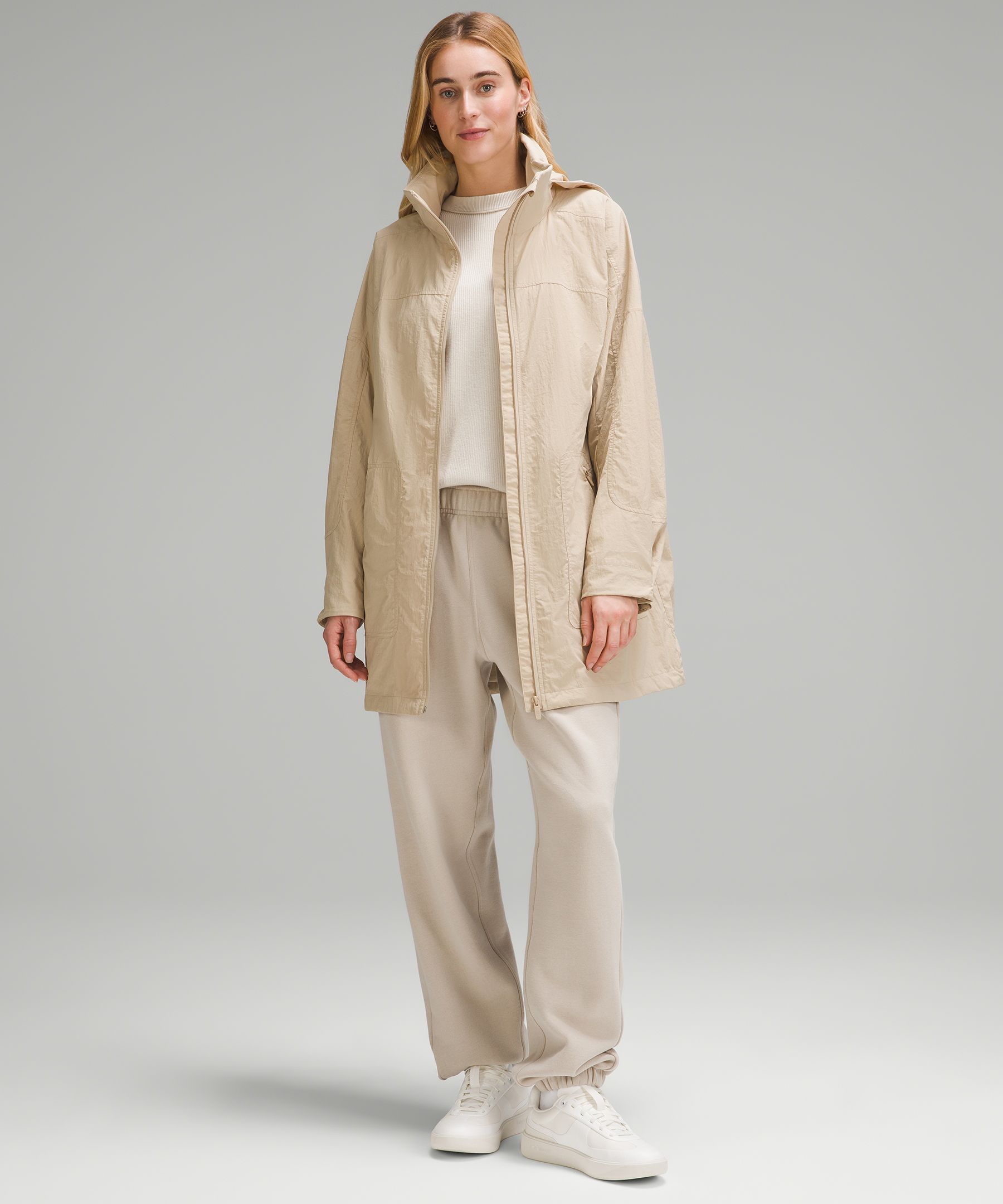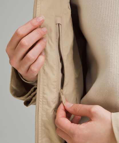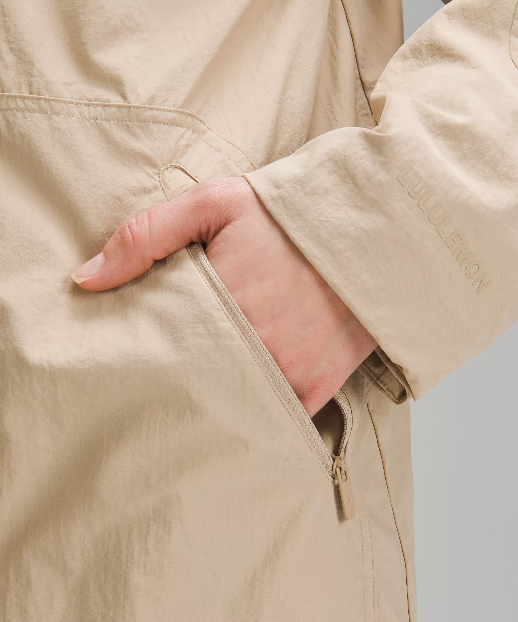 - Zippered hand pockets with hidden phone sleeve