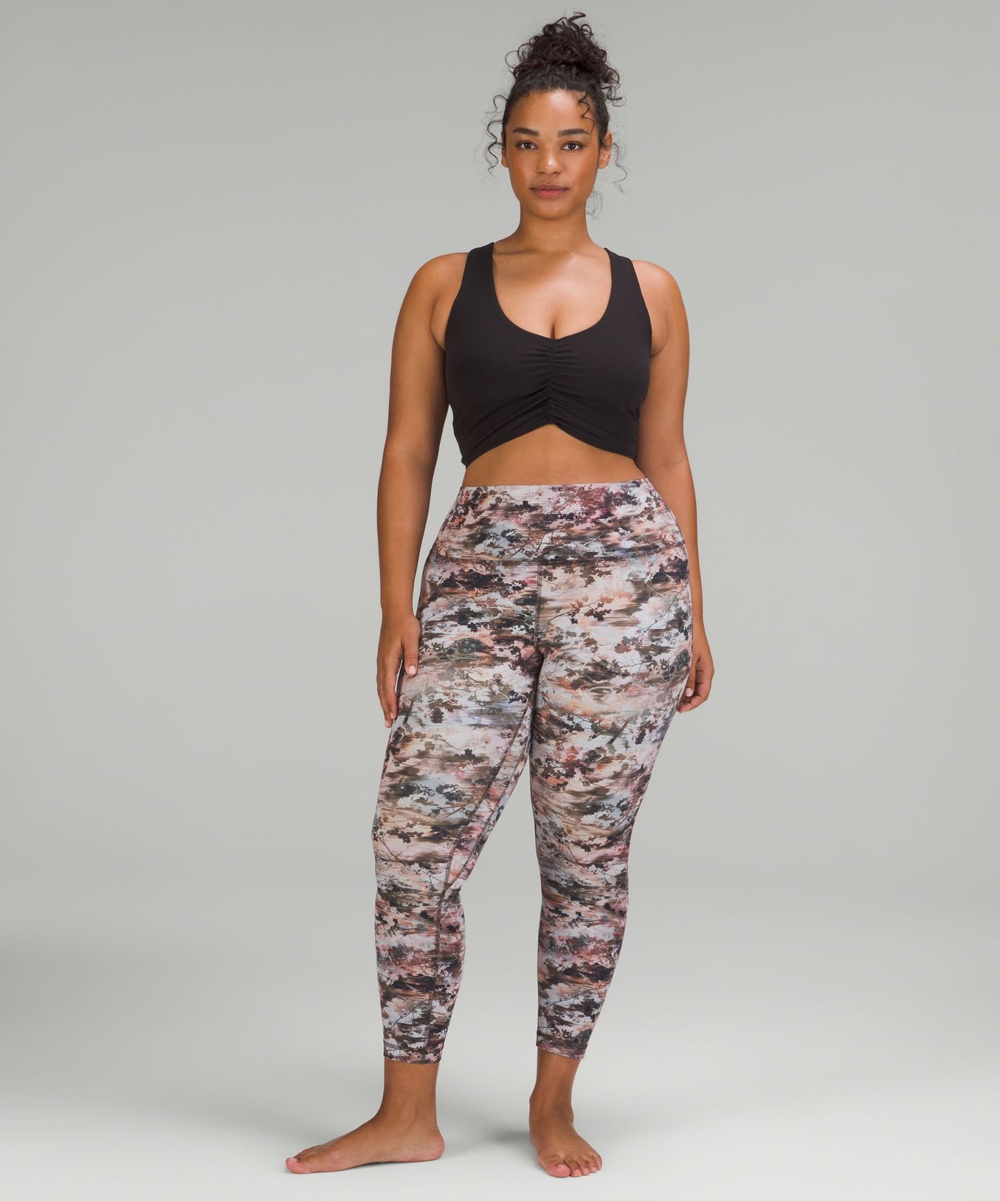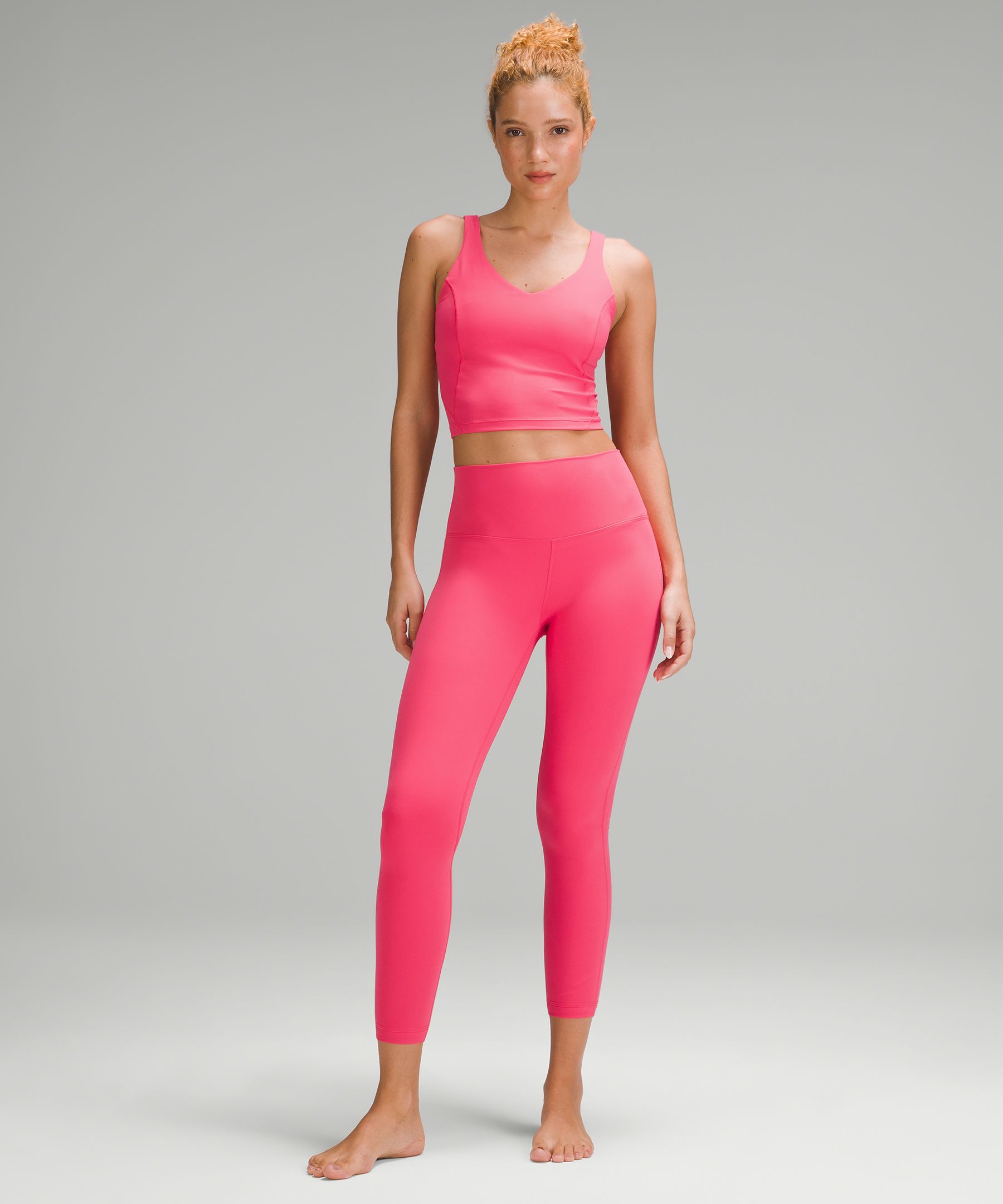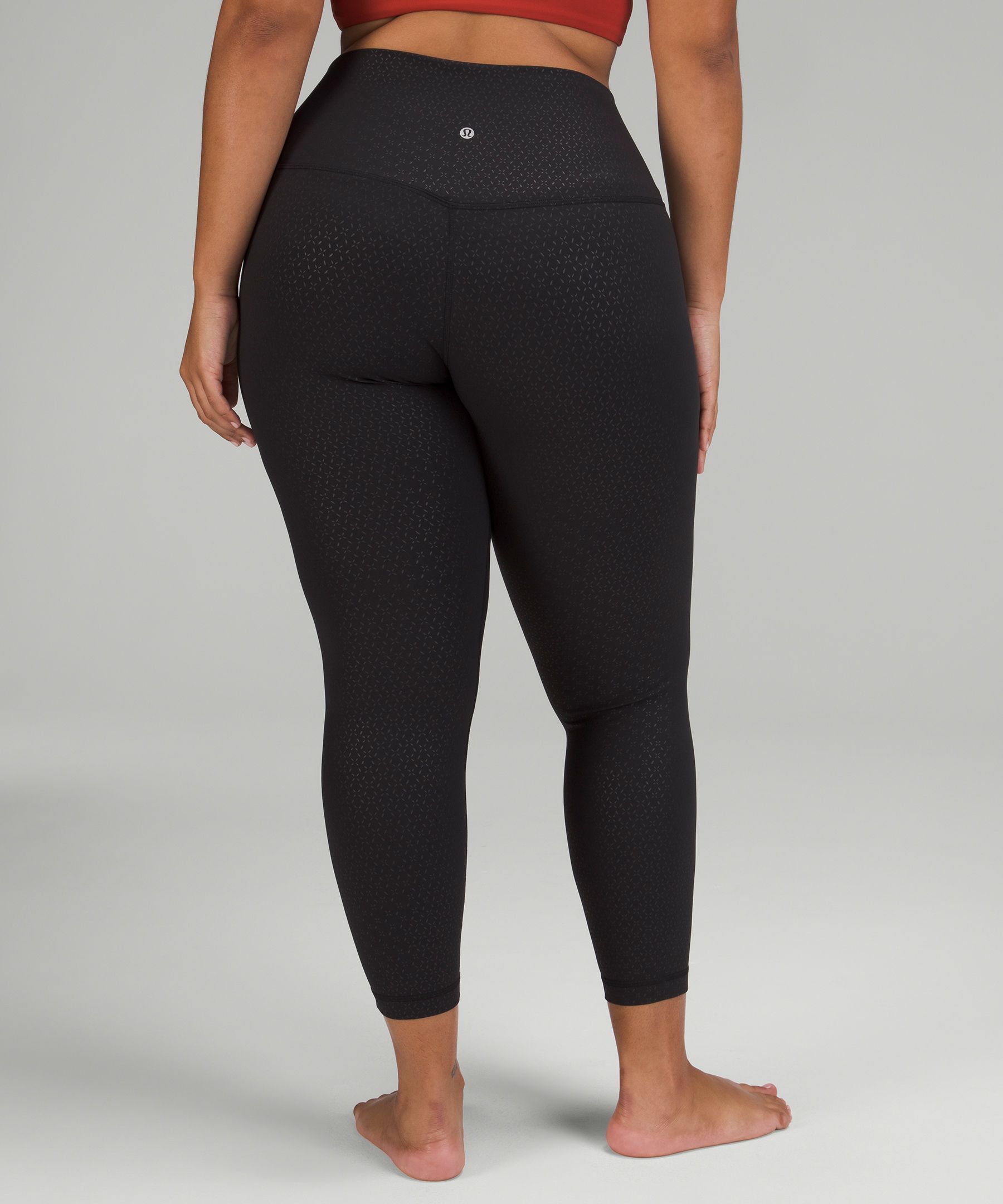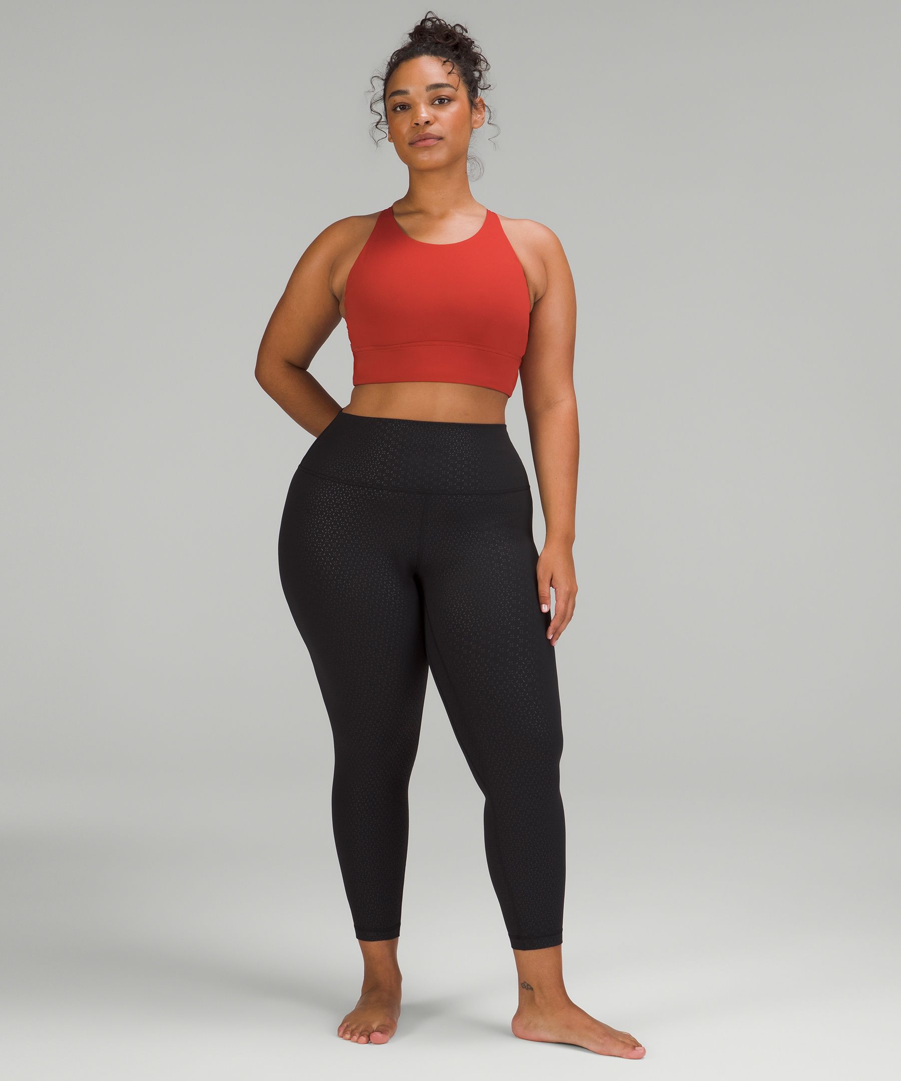 A high-rise waistband keeps you covered during forward folds and downward dogs. Our 25" length is intended to sit above your ankle.