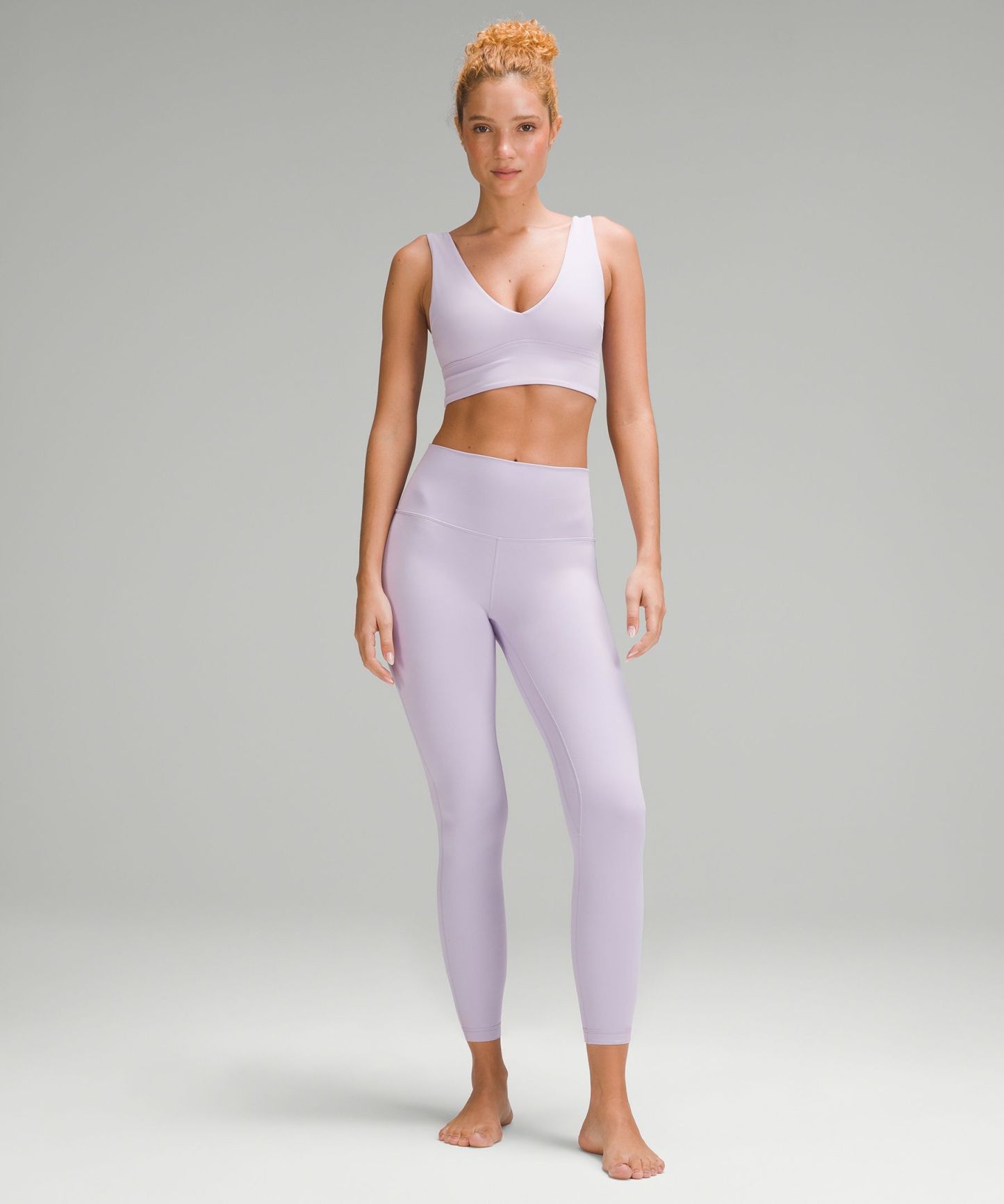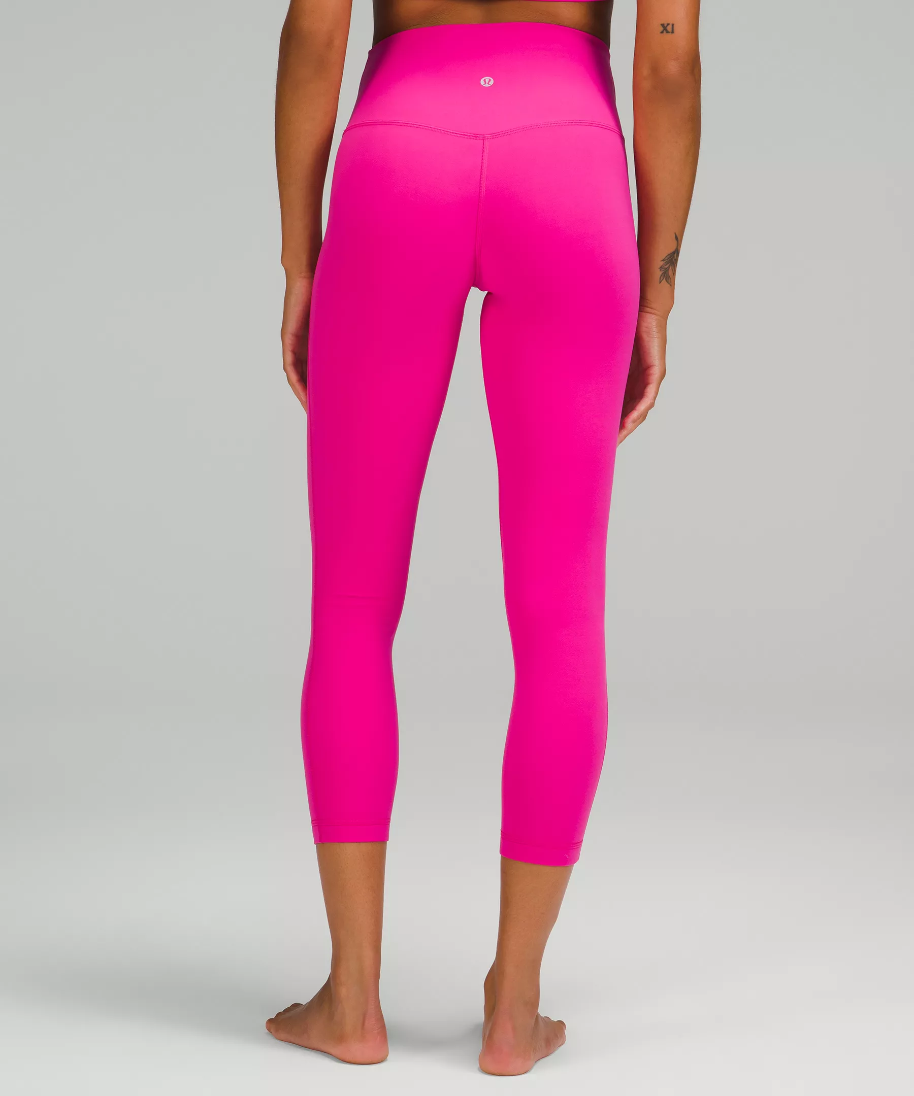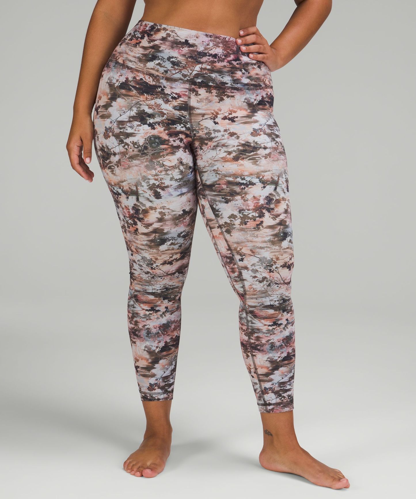 A high-rise waistband keeps you covered during forward folds and downward dogs. Our 25" length is intended to sit above your ankle.