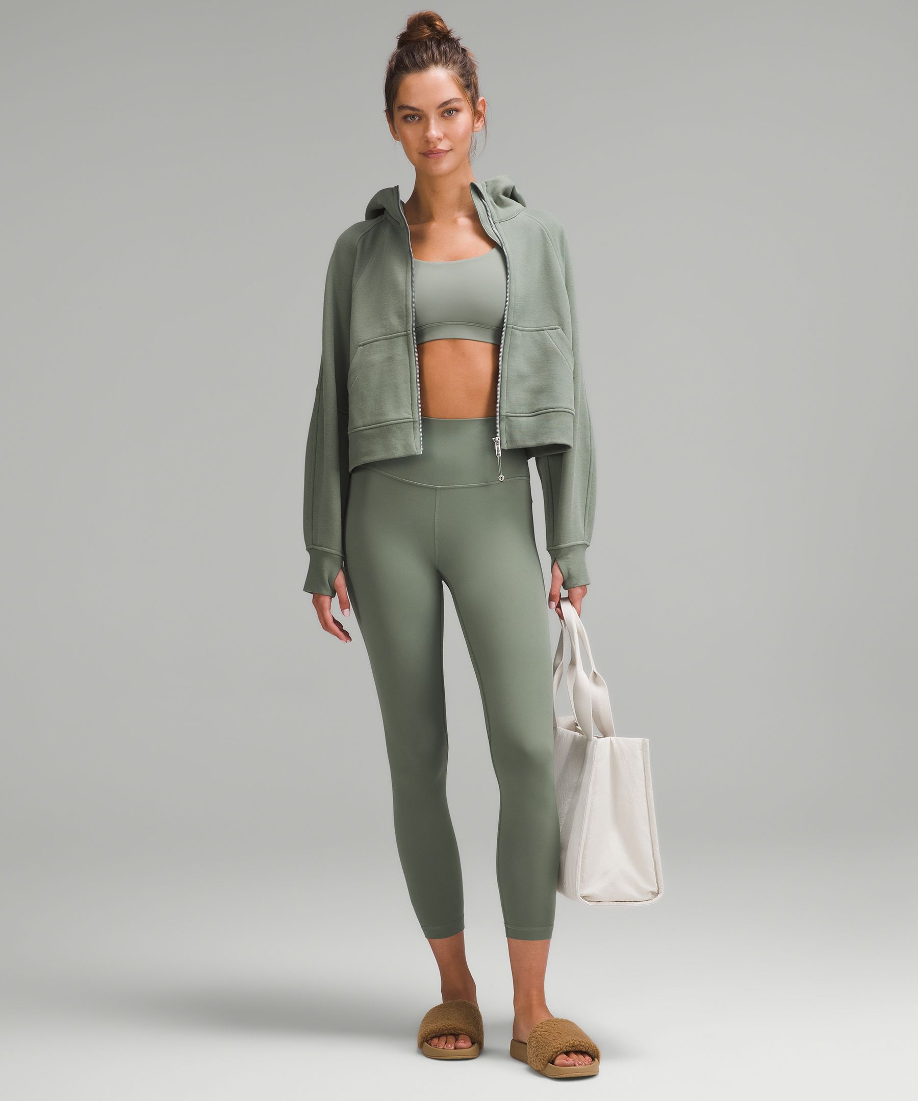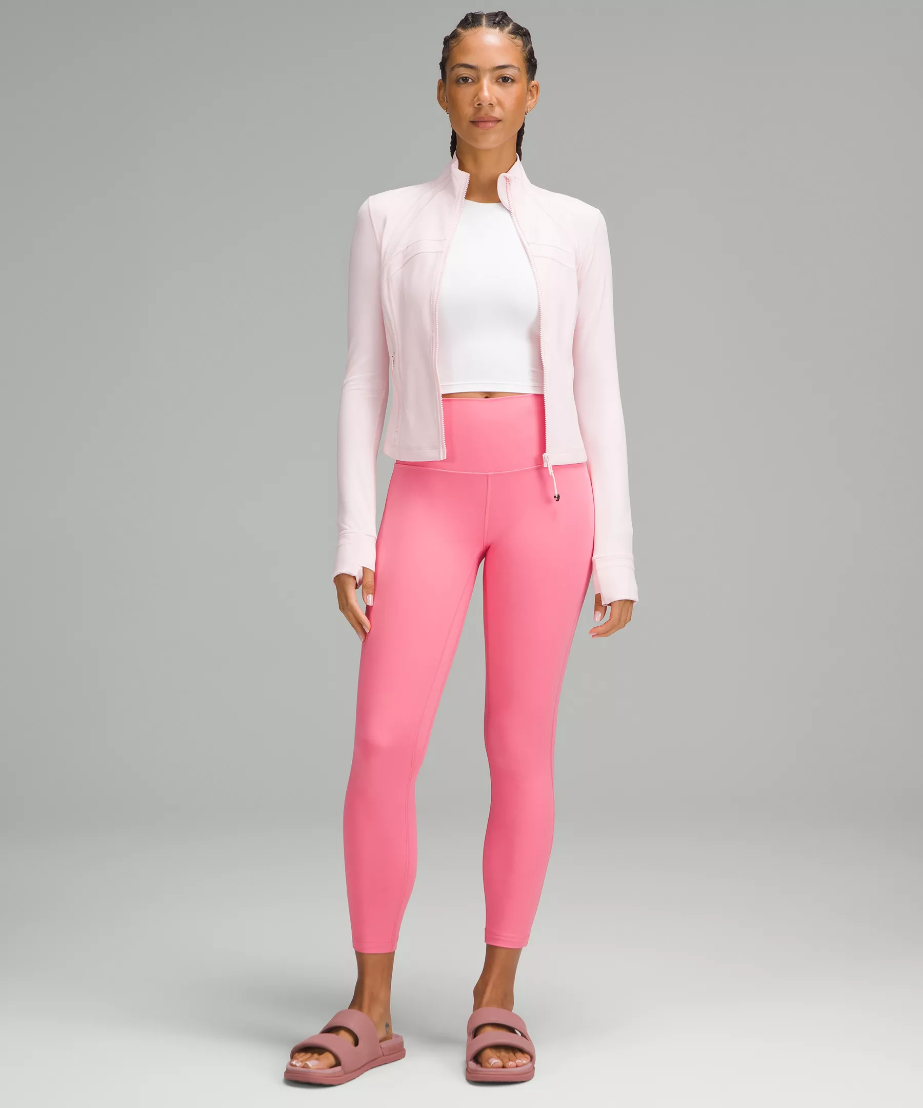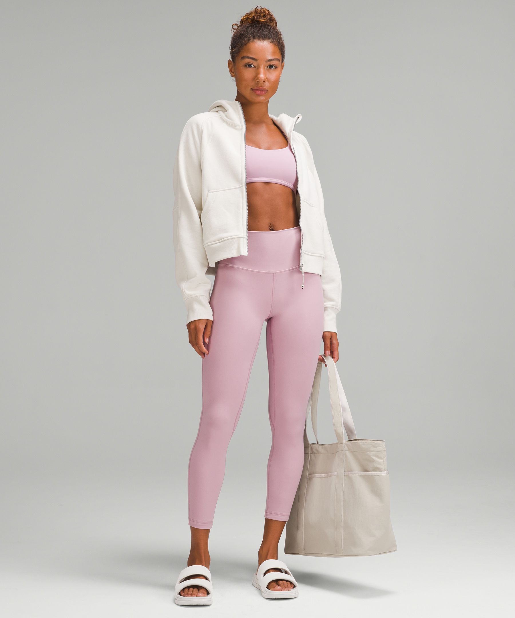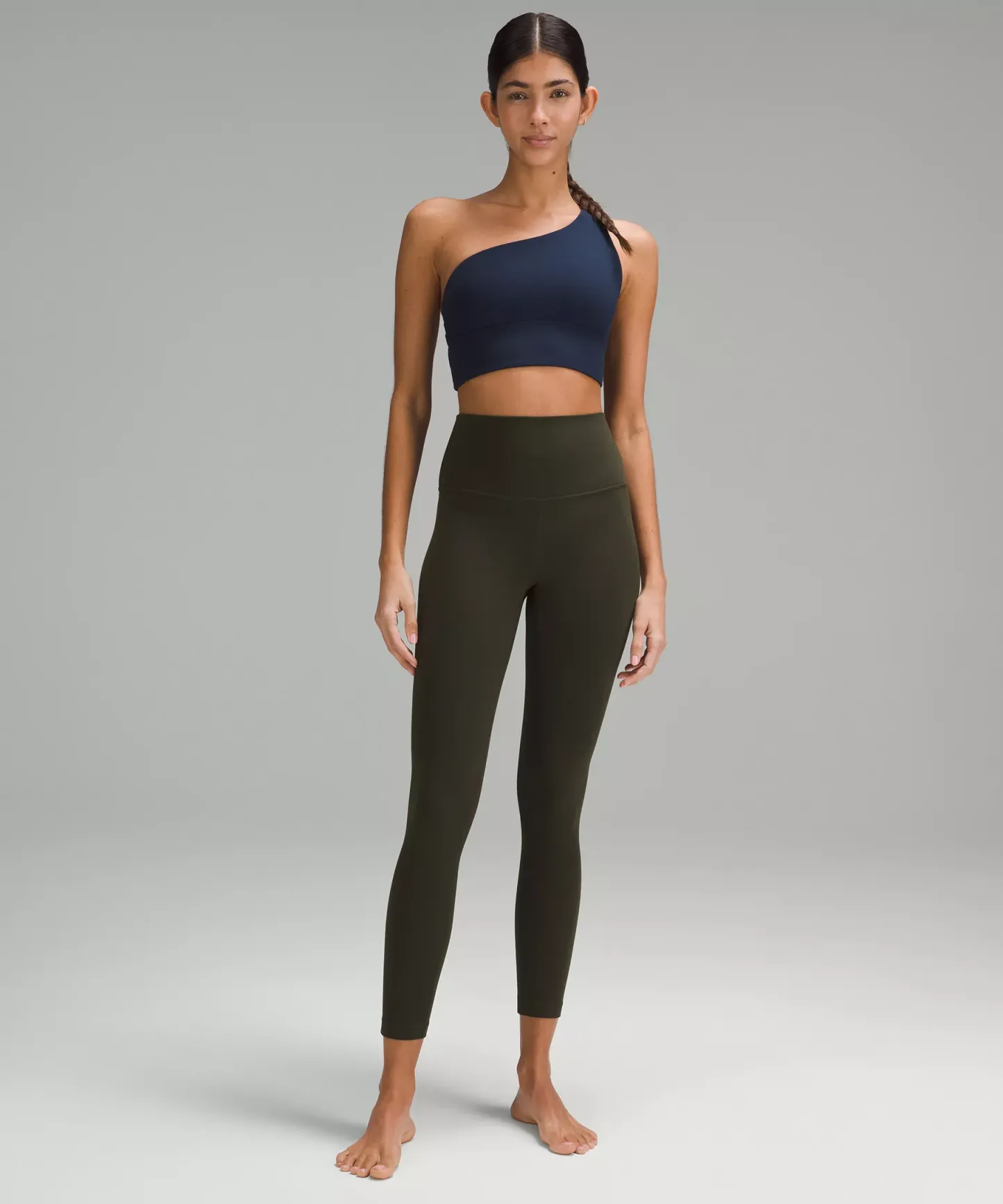 A high-rise waistband keeps you covered during forward folds and downward dogs. Our 25" length is intended to sit above your ankle.