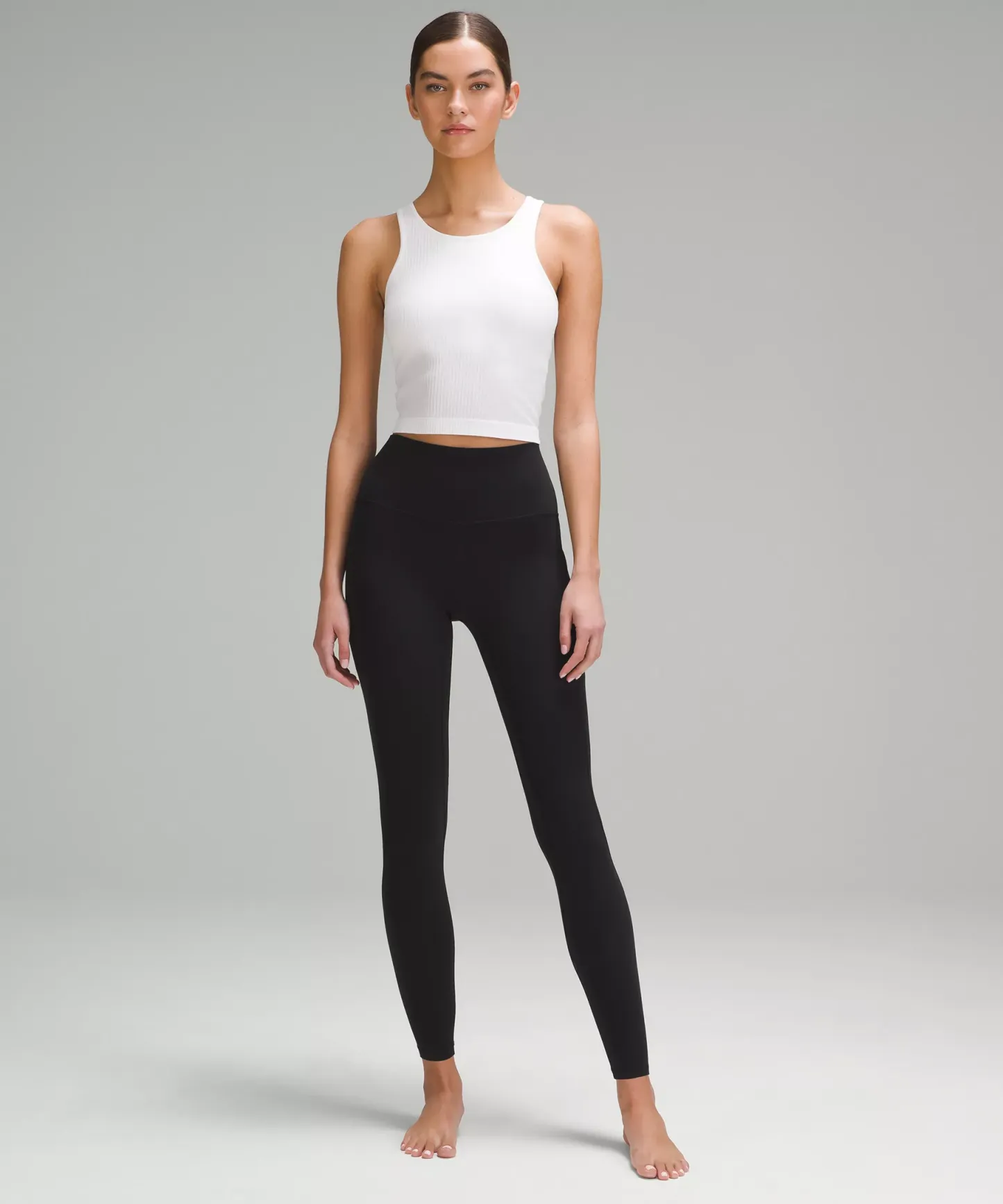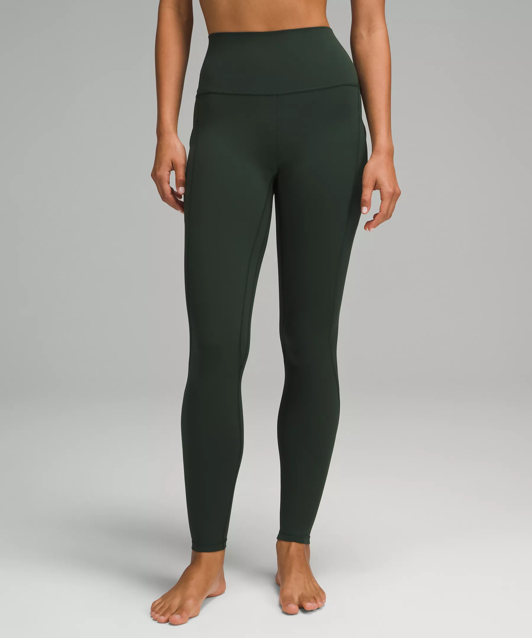 A high-rise waistband keeps you covered during forward folds and downward dogs. Our 28" length is intended to sit at your ankle.