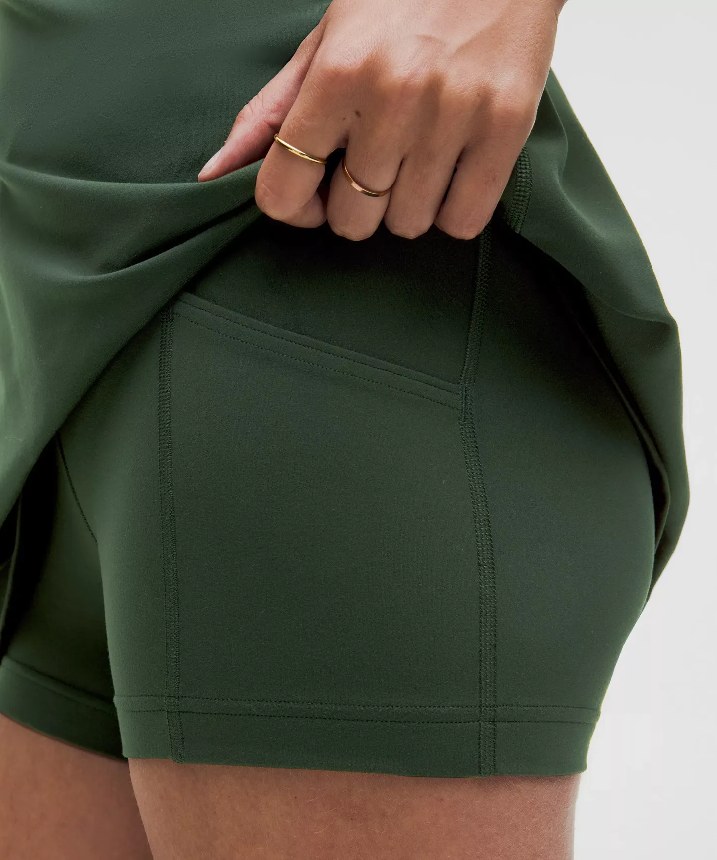 - Shorts liner has side drop-in pockets and an open-back waistband to make bathroom breaks a breeze