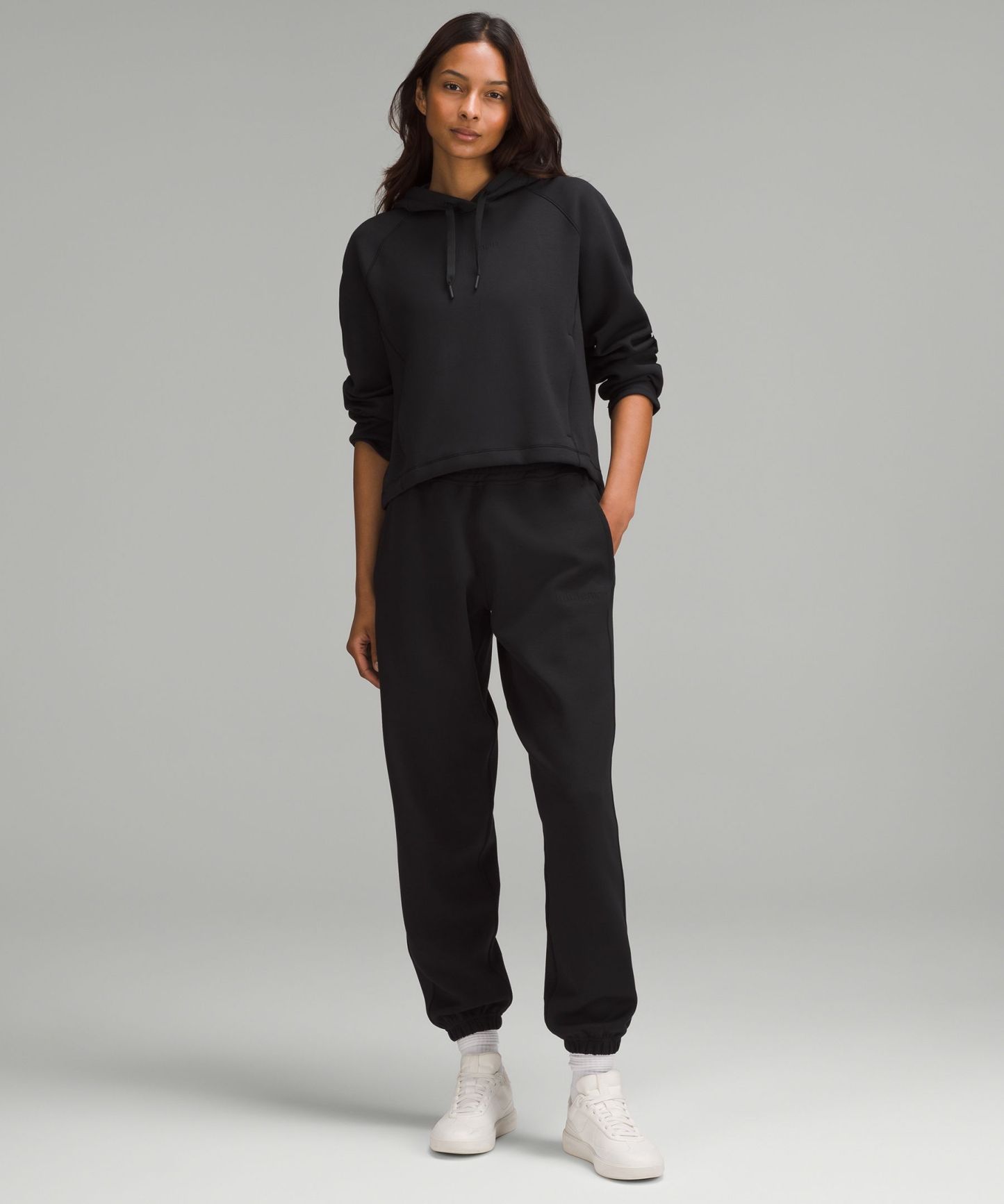 - Kangaroo pocket with hidden phone sleeve