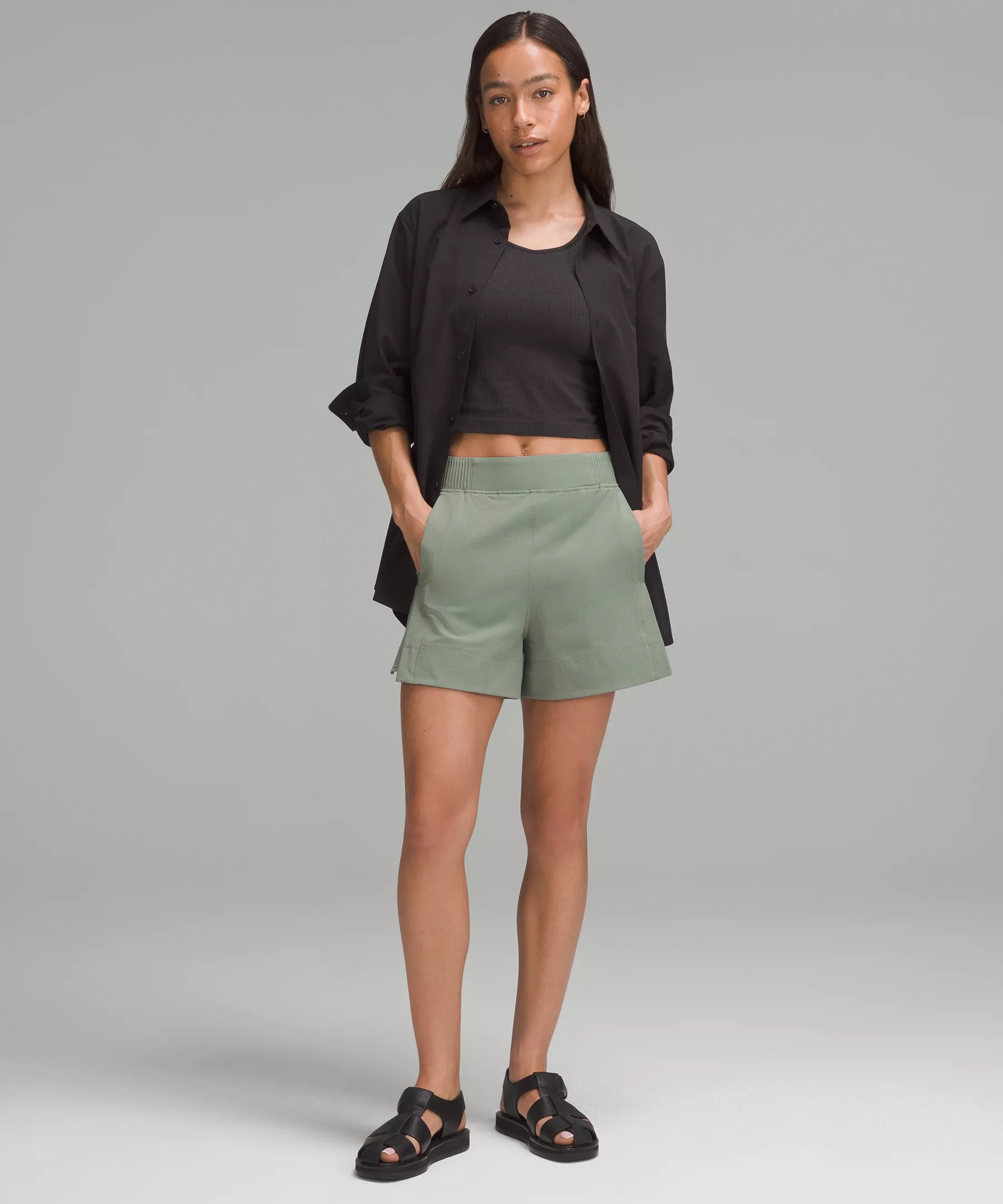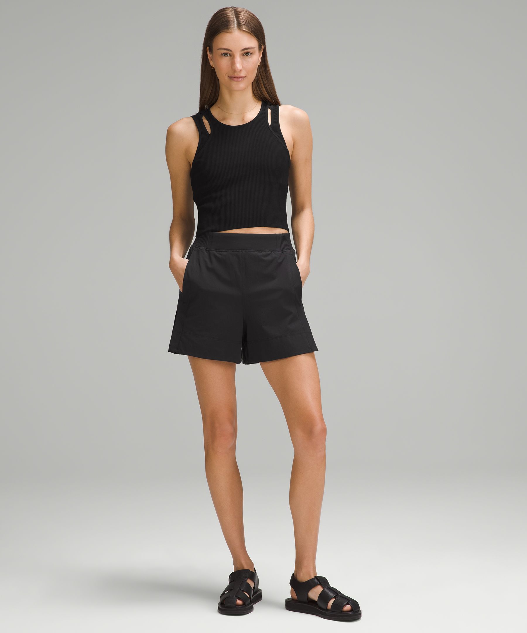 Stretch Woven Relaxed-Fit High-Rise Short 4"