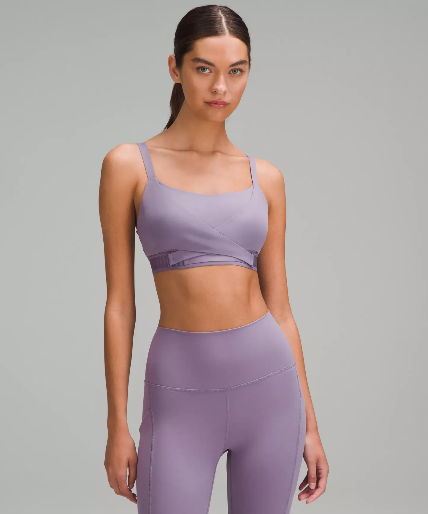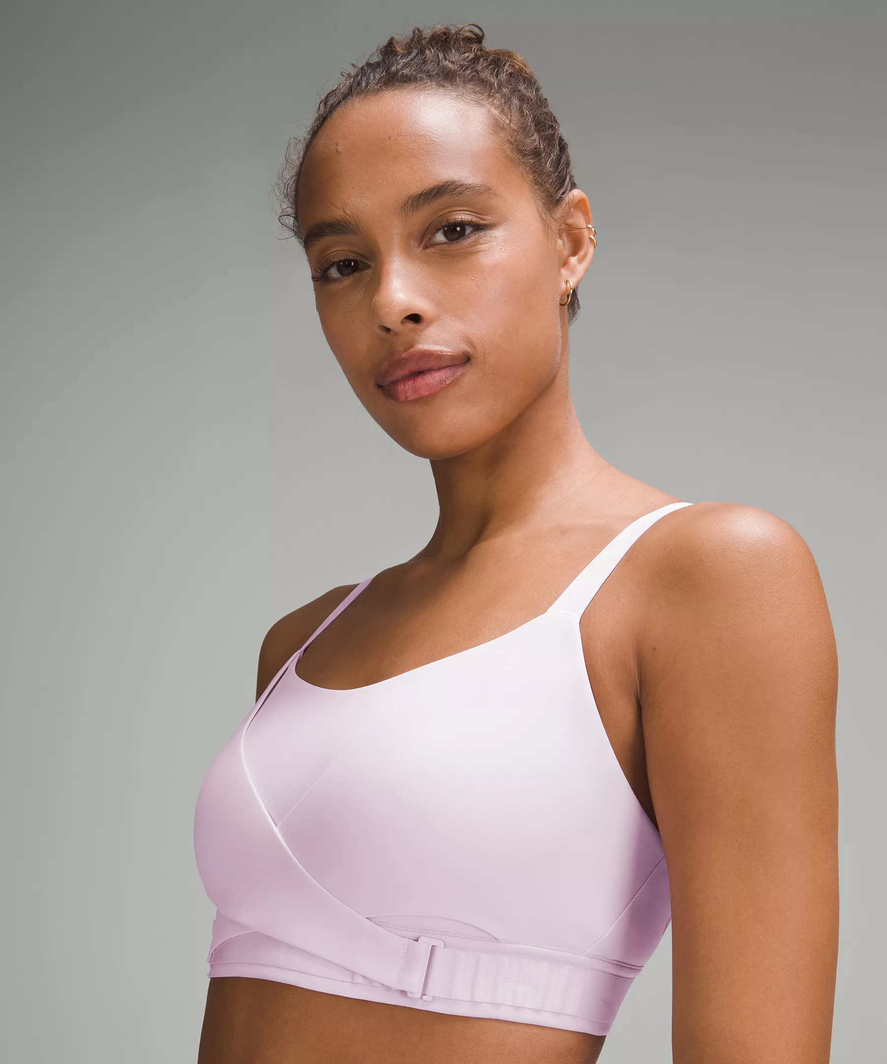 - Front-wrap layers have a swan hook that fastens to a row of loops on the underband so you can easily adjust the fit. These layers can be adjusted independently to accommodate different volumes