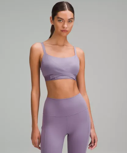 - Lift the front wrap layers to reveal pocket openings where an optional bra cup or prosthetic can be inserted (prothesis not included)