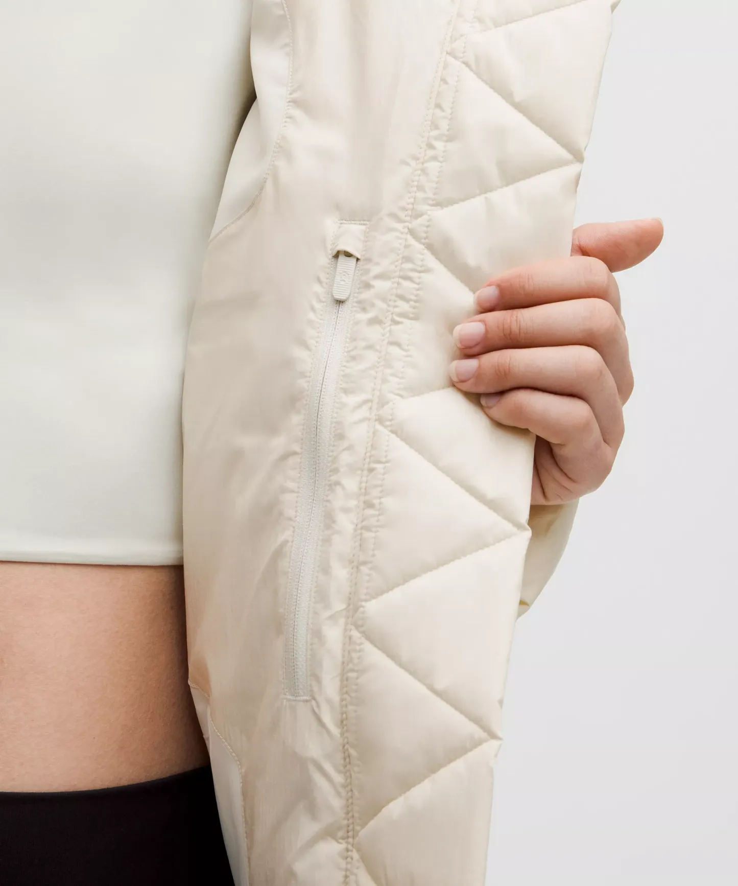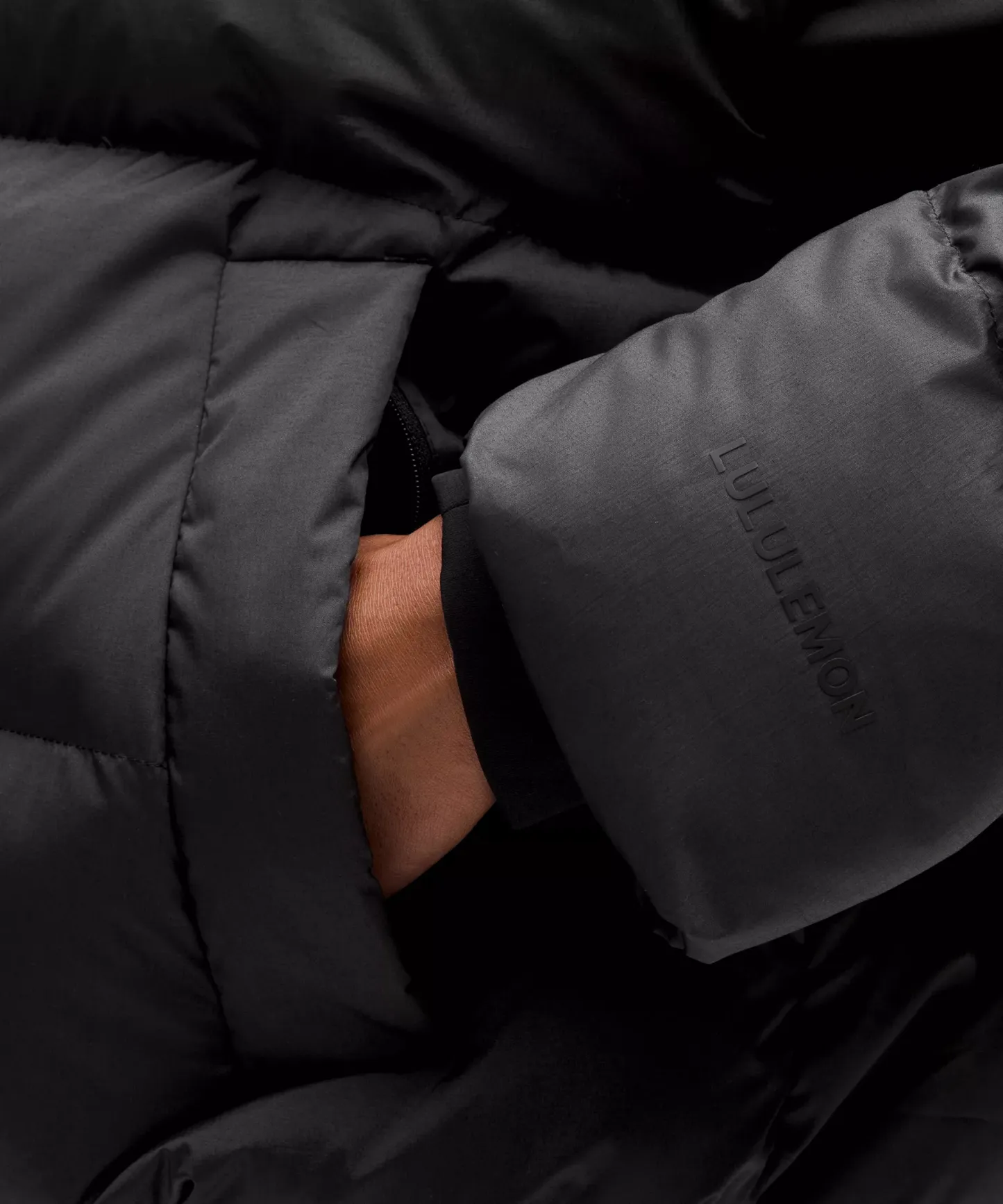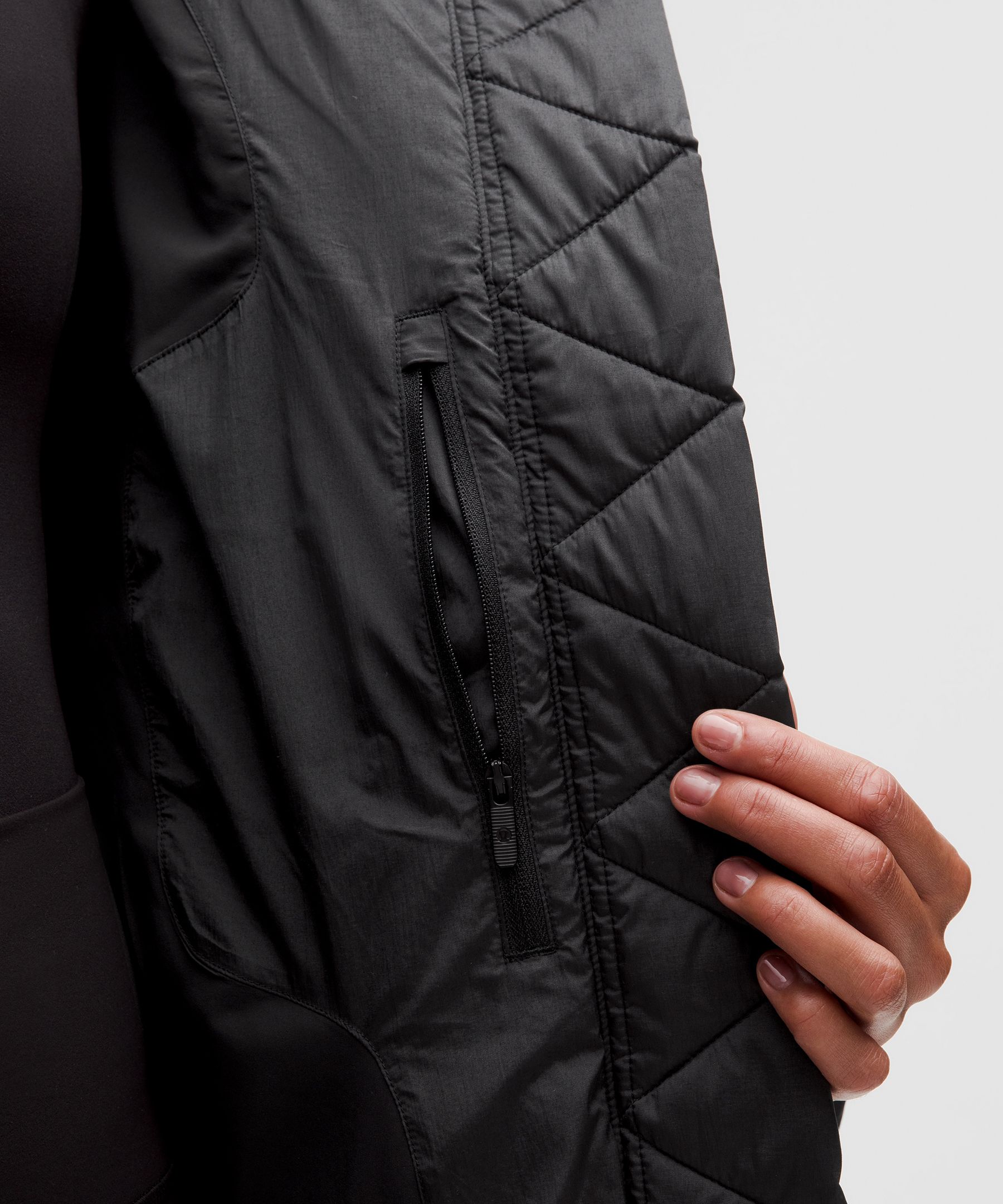 - Zippered hand pockets with hidden phone sleeve