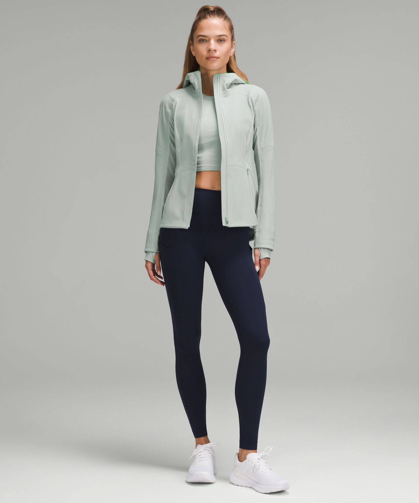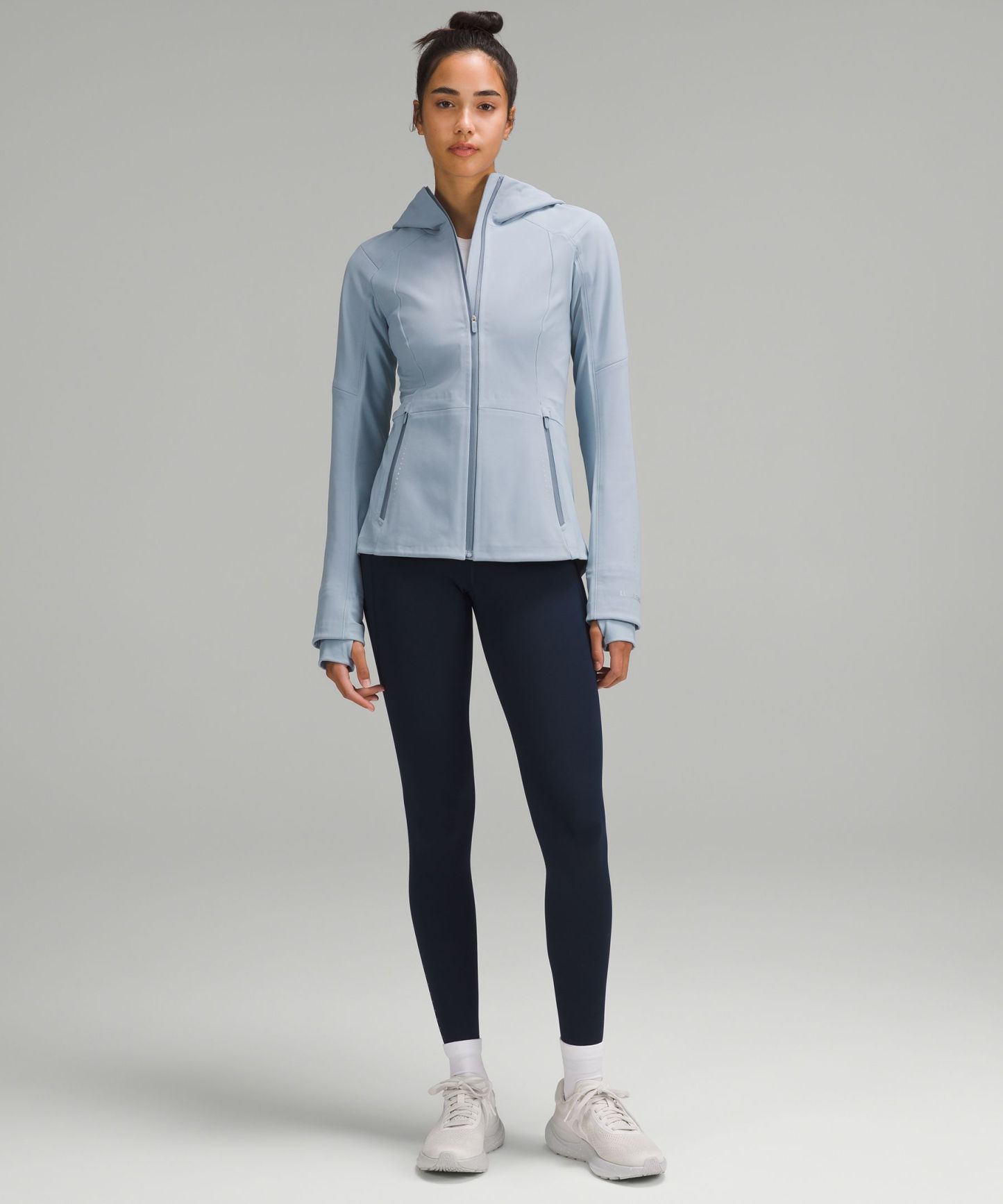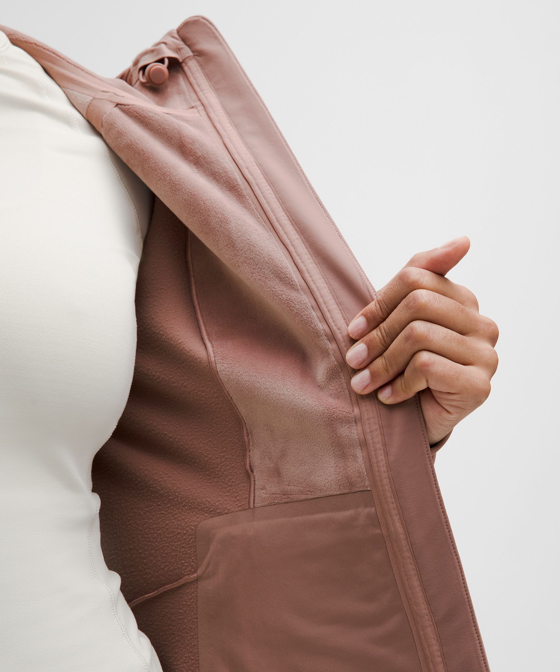 - Four-way stretch, water-repellent tech fleece fabric is brushed for warmth