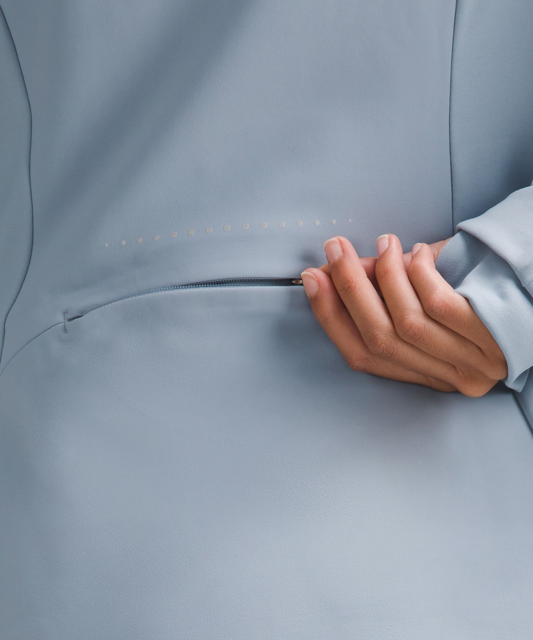 - Zippered back pocket