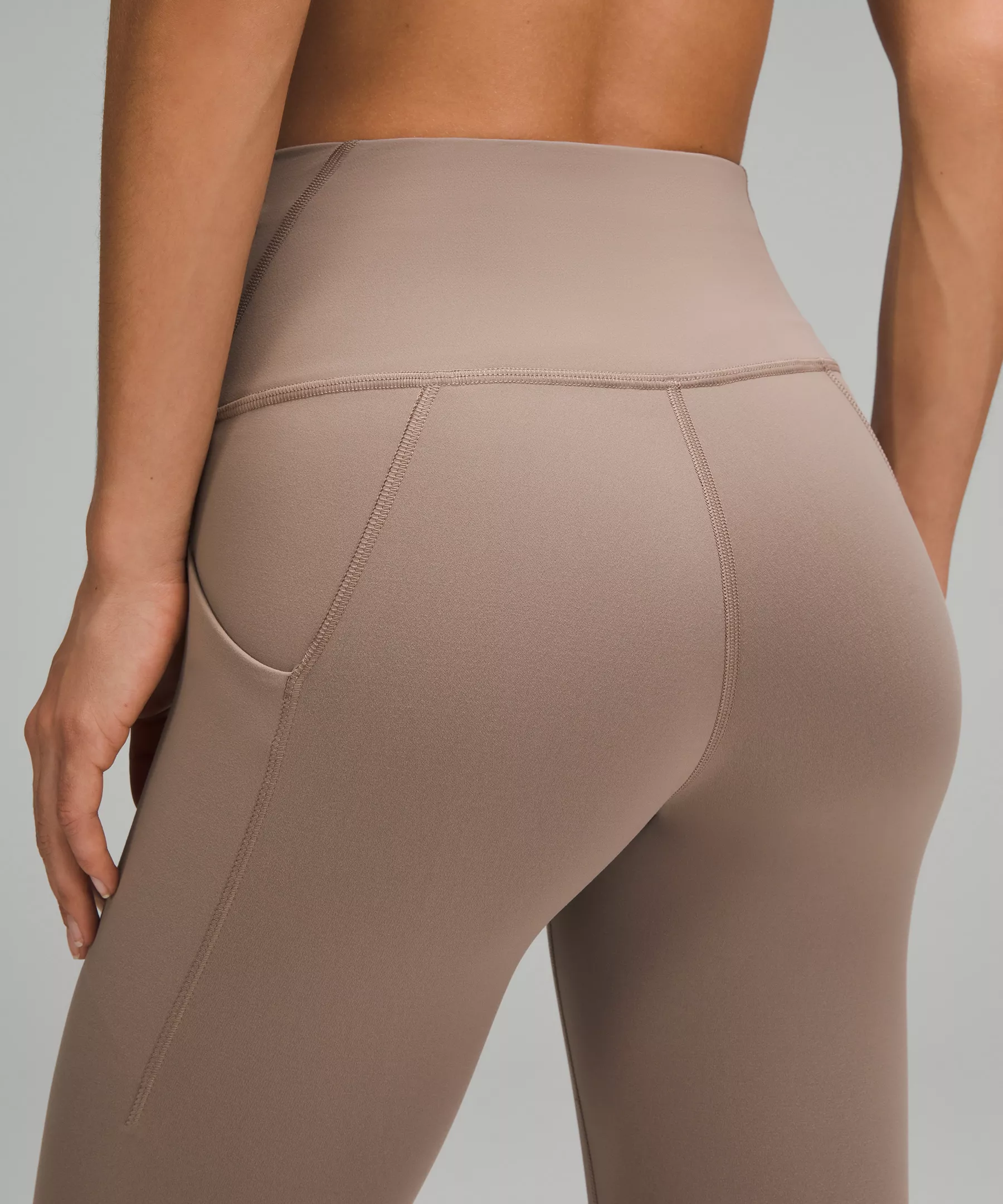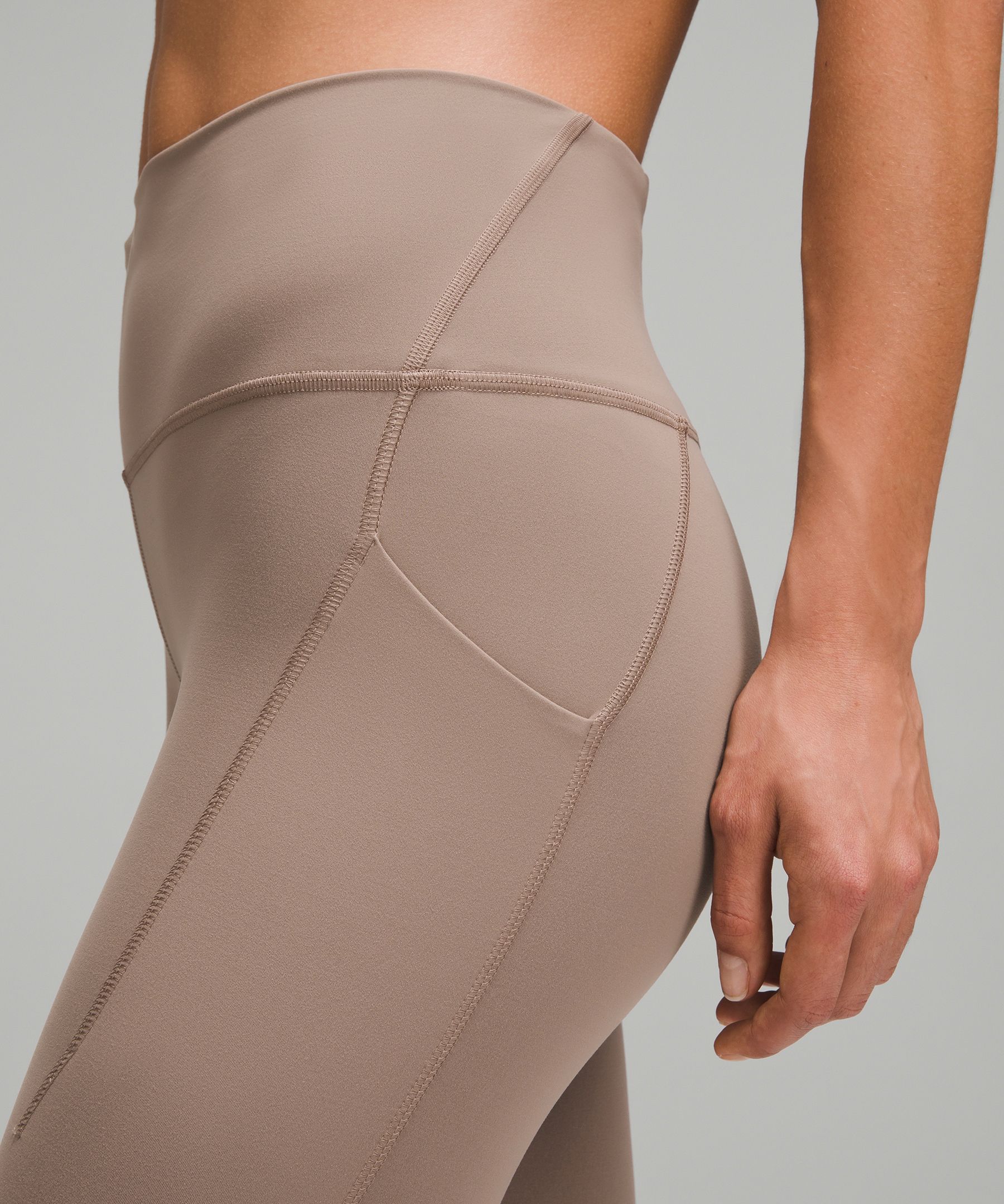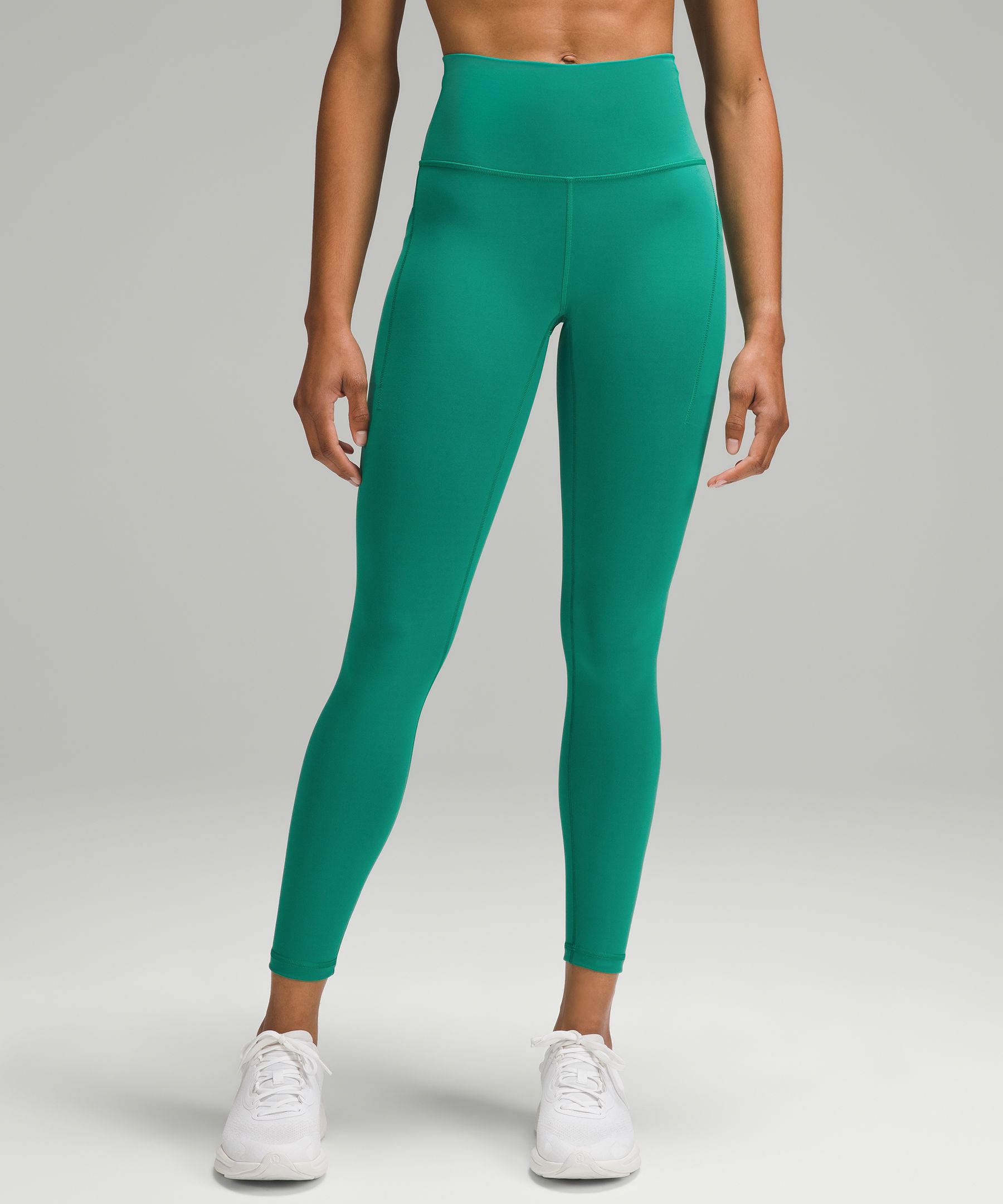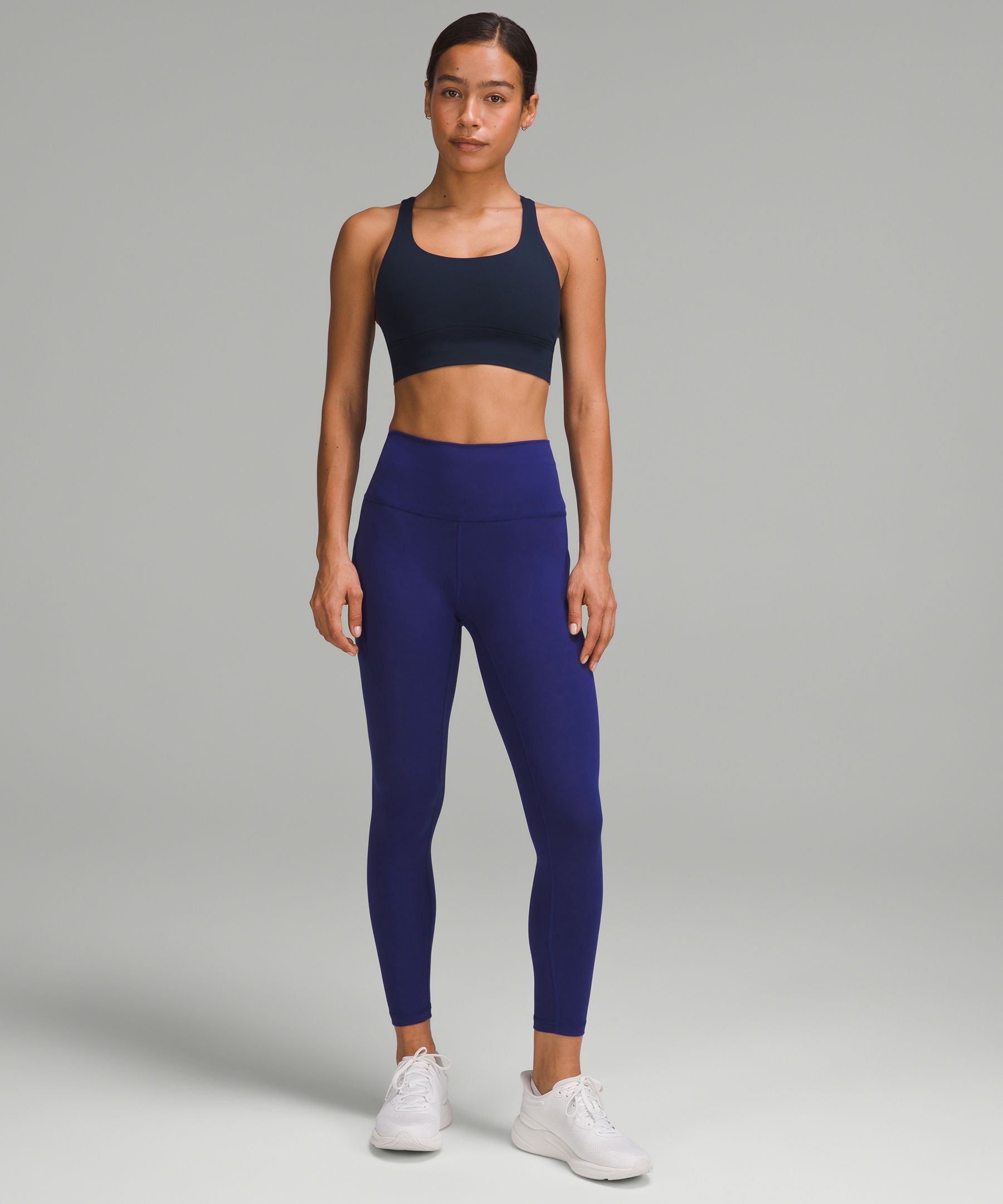 A high-rise waistband keeps you covered as you lift and squat. Our 25" length is intended to sit above your ankle.