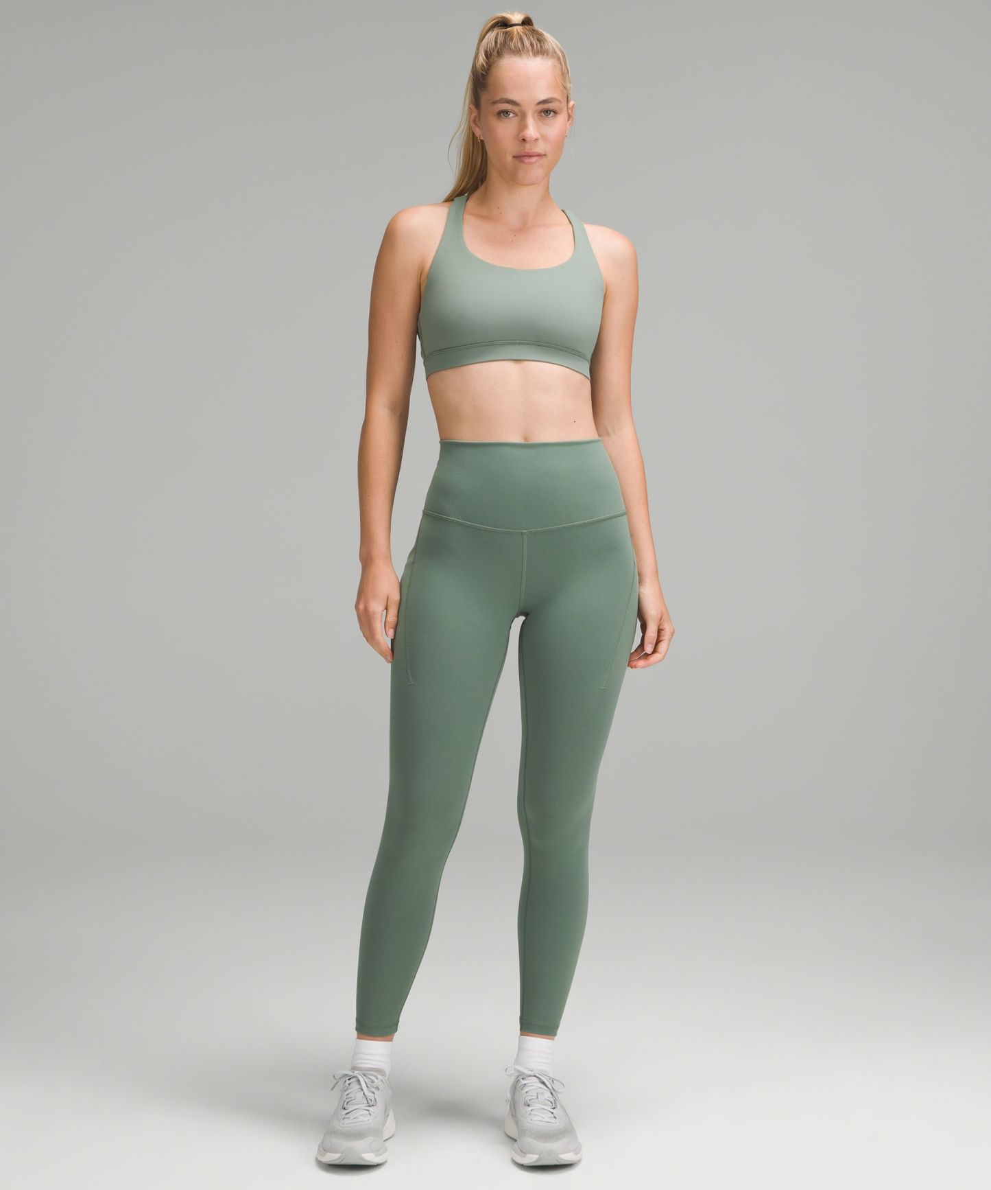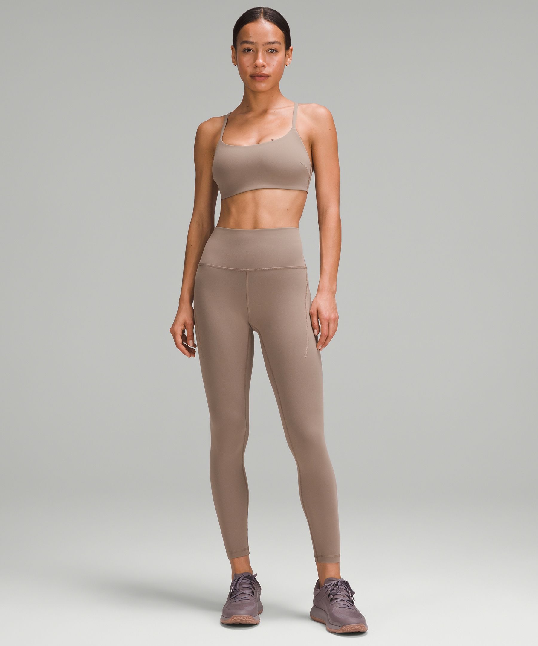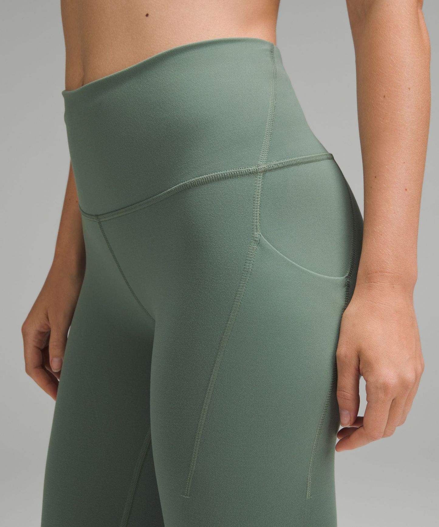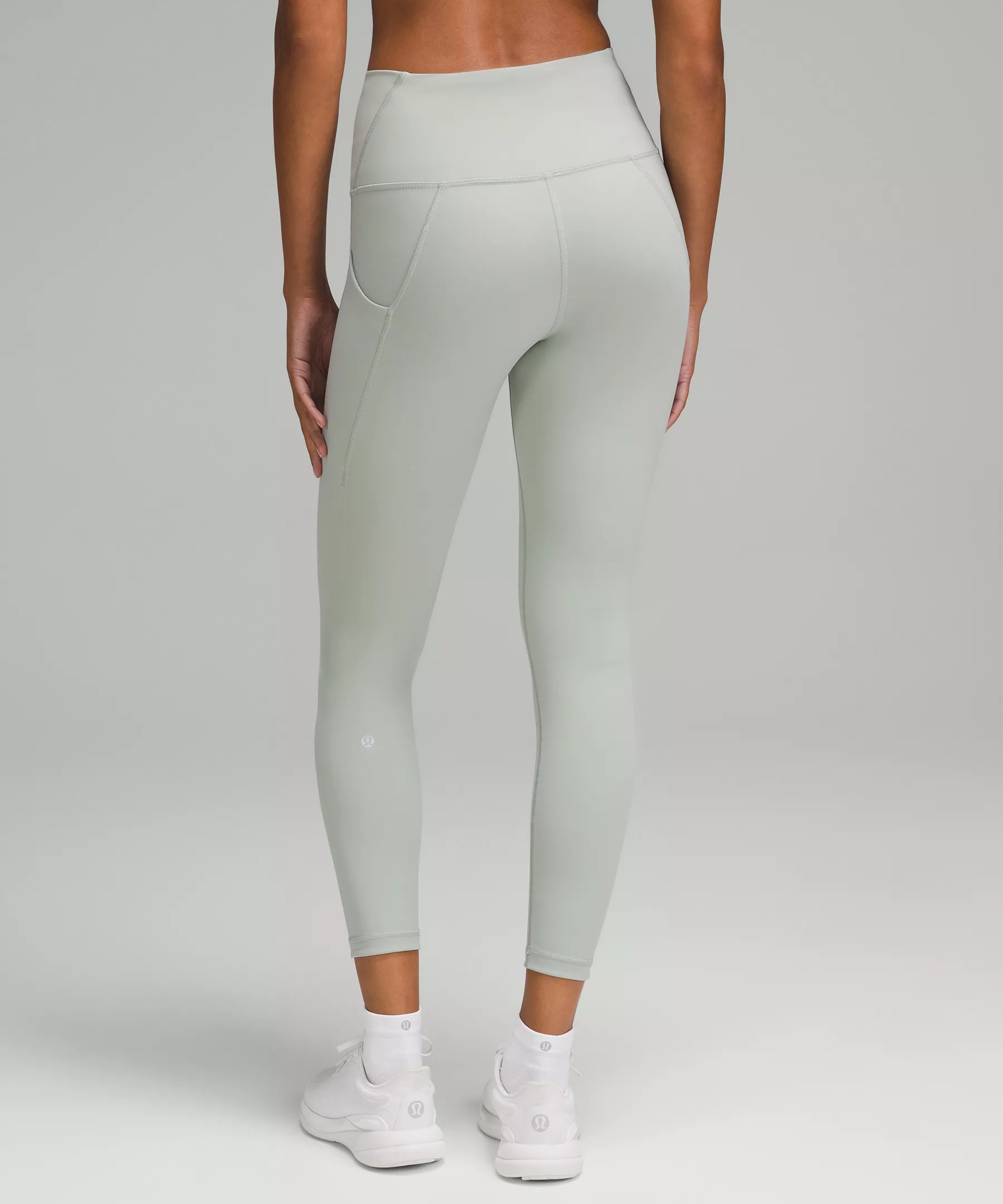 A high-rise waistband keeps you covered as you lift and squat. Our 25" length is intended to sit above your ankle.